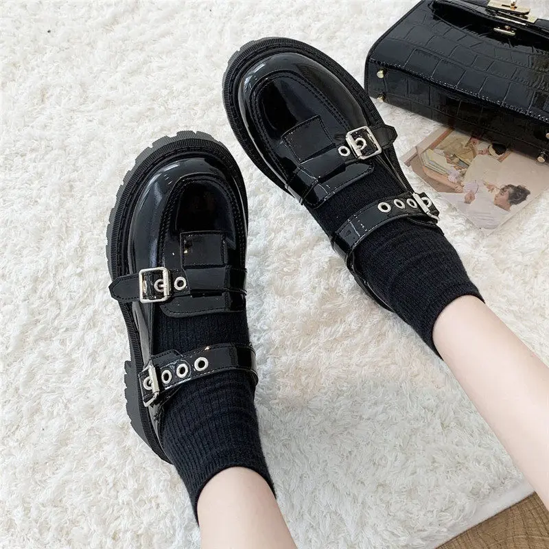 Туфли Lolita из лакированной кожи, Туфли Мэри Джейн, новинка 2022, женская обувь на платформе, женская обувь с пряжкой на толстой подошве, черные