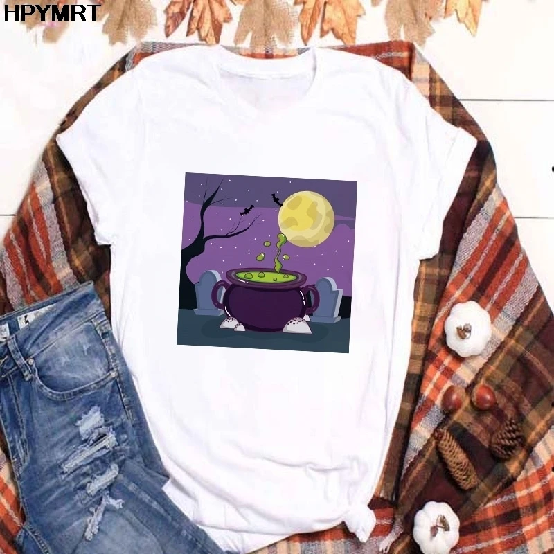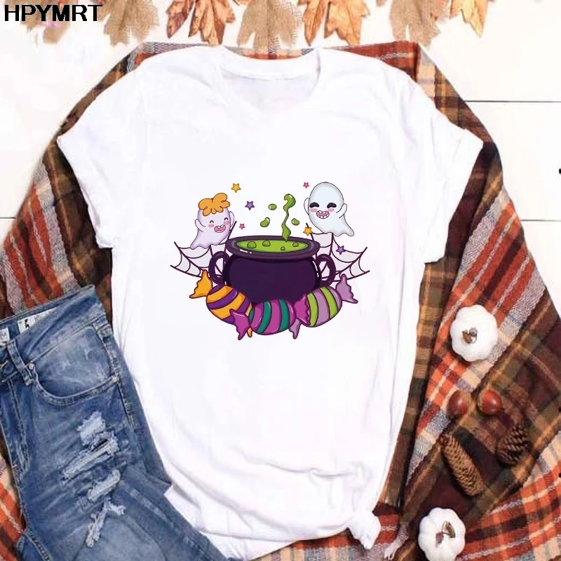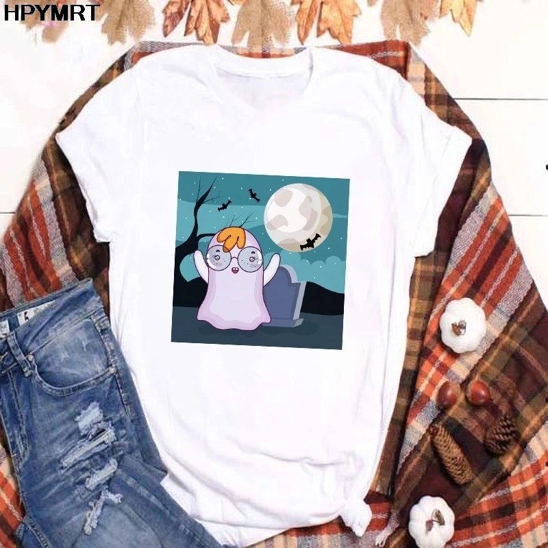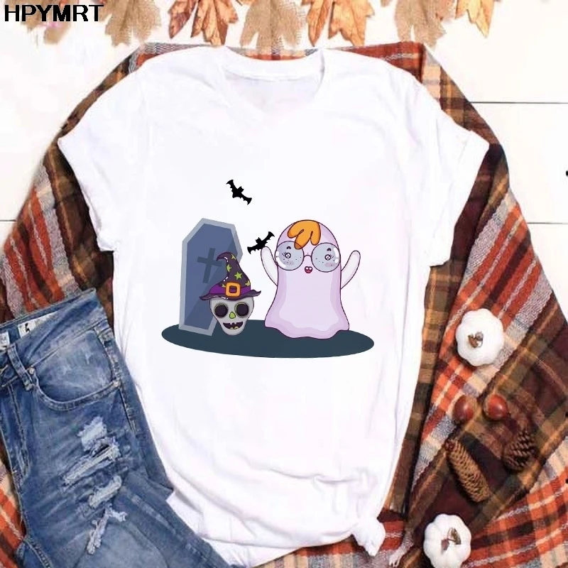 Женская футболка в стиле Харадзюку, с графикой на Хэллоуин, 90s, мо...