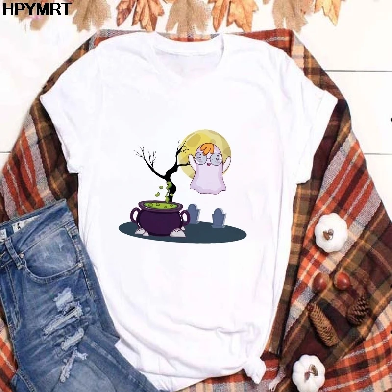 Женская футболка в стиле Харадзюку на Хеллоуин, футболка с круглым вырезом и коротким рукавом, большие размеры