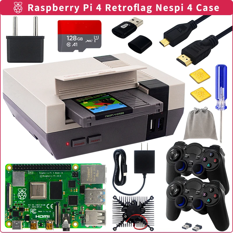 Чехол для Raspberry Pi 4 Retro Flag NESPi 4, чехол SSD, вентилятор охлаждения, карта, радиаторы, геймпад, ридер для Raspberry Pi 4 Model B