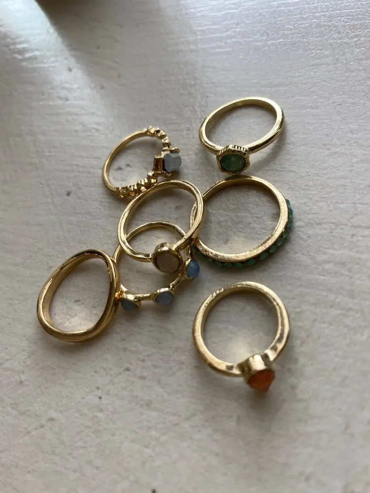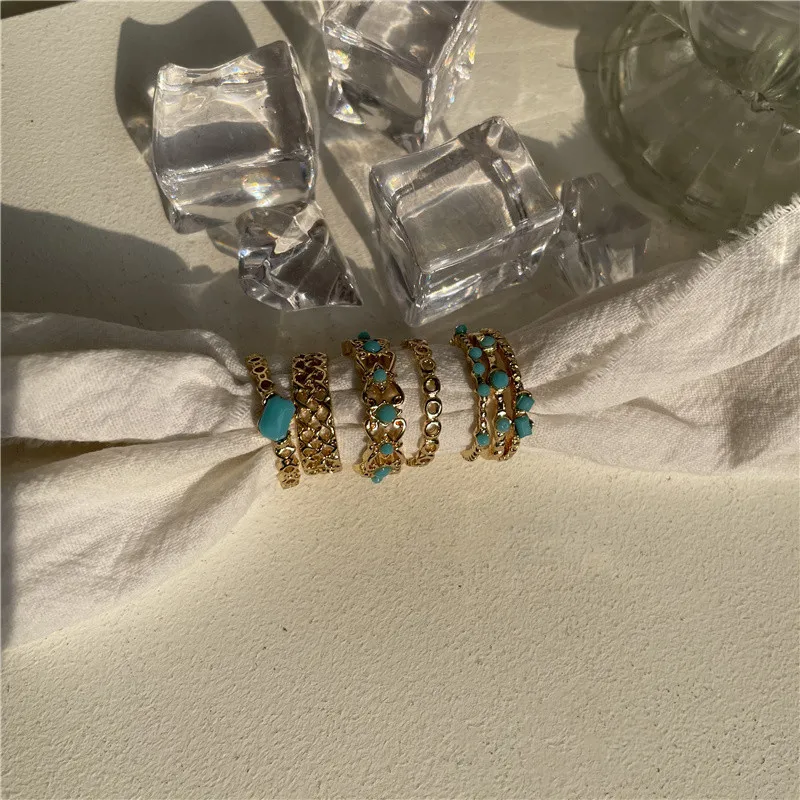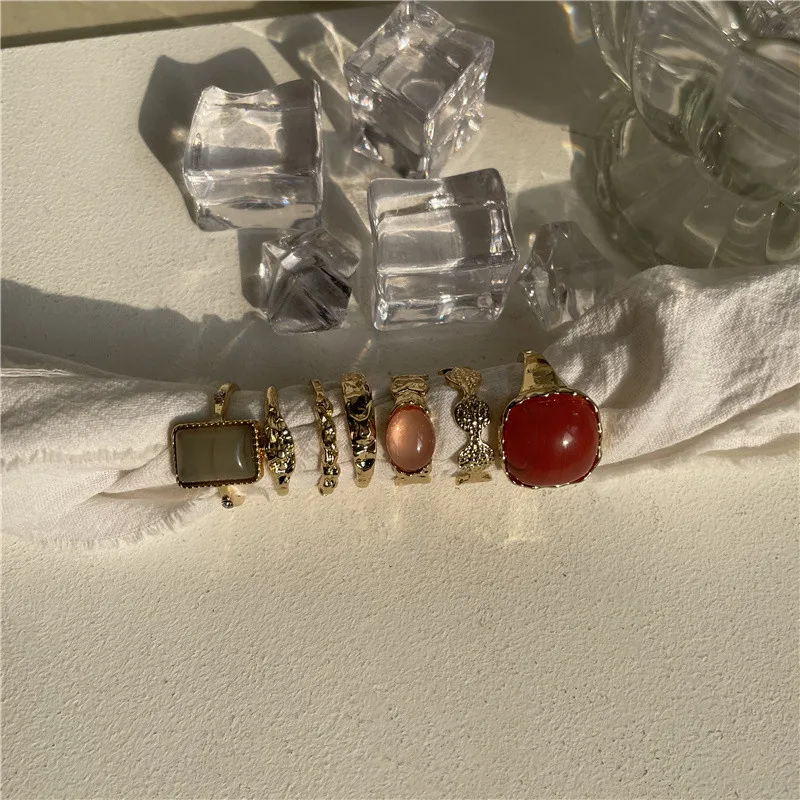 Женские кольца с разноцветными камнями, 8 шт.компл., винтажные, летние, металлические, корейские, для вечевечерние, 2020