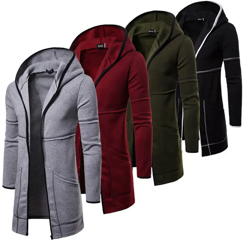 Мужские повседневные толстовки с капюшоном, однотонное длинное паль...