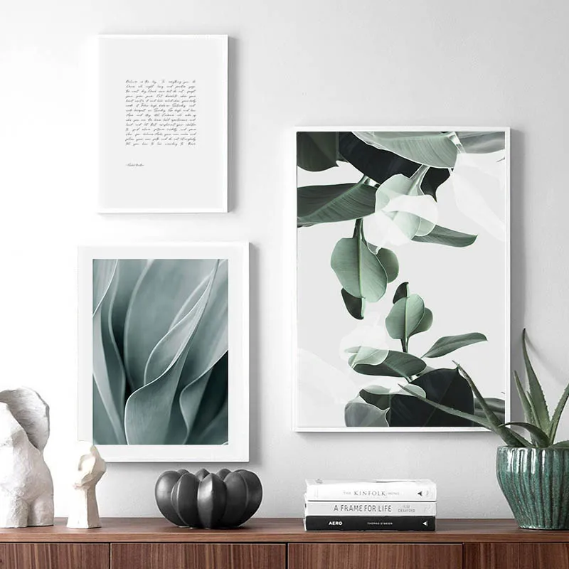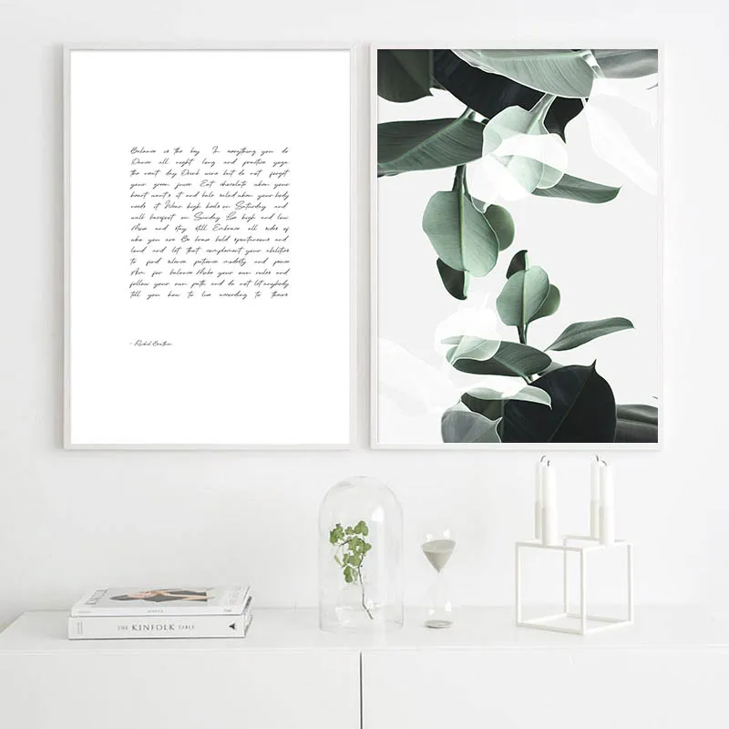 Постер в скандинавском стиле, абстрактная картина с цветочными цитатами, минималистская картина, украшение для гостиной, зеленое растение, лист, холст