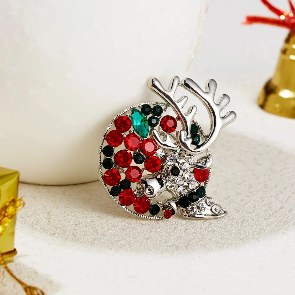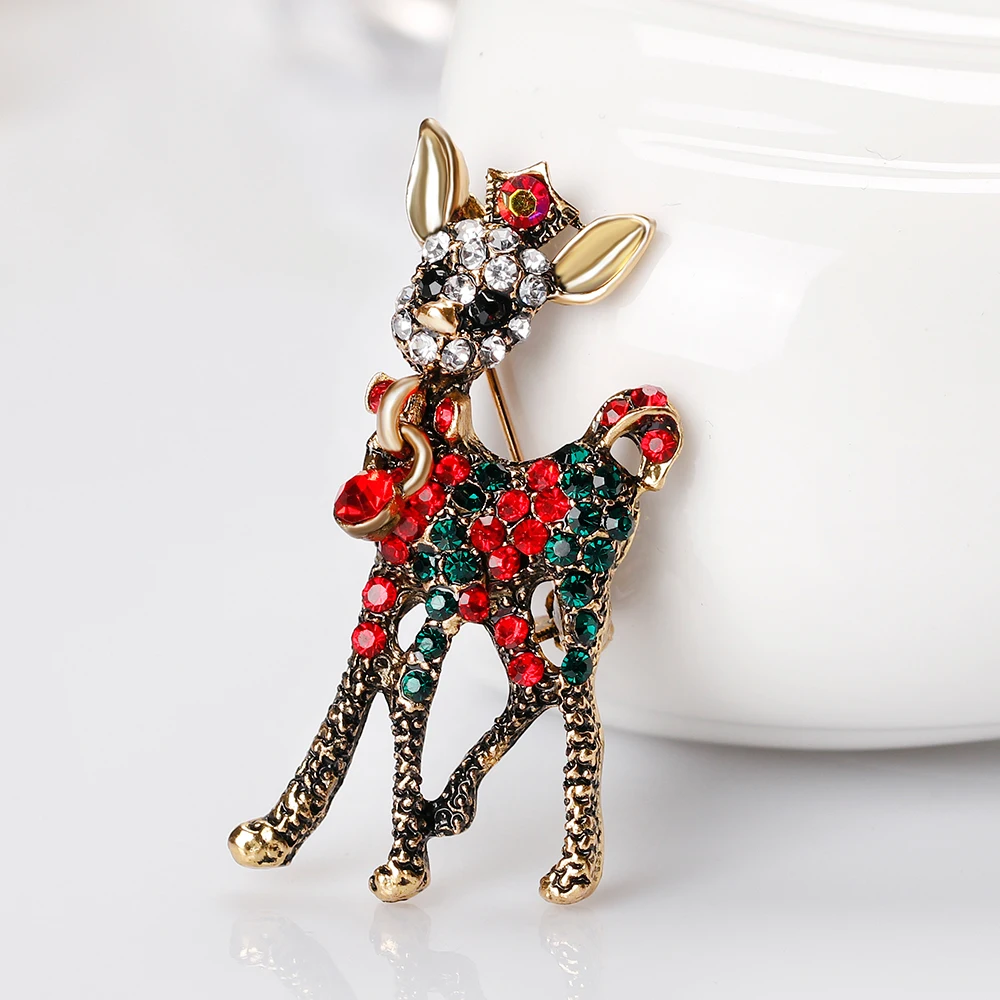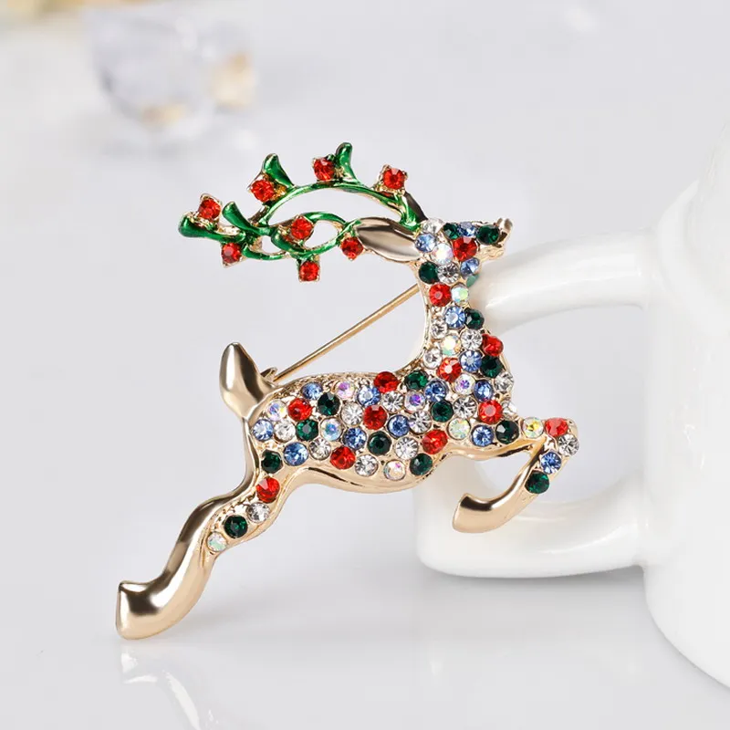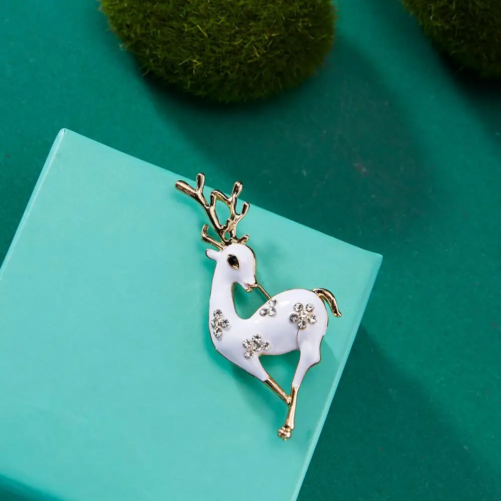Стразы Броши с оленями для женщин рождественские олени булавки Роскошные эмалированные олени пальто животных корсаж модные рождественские украшения