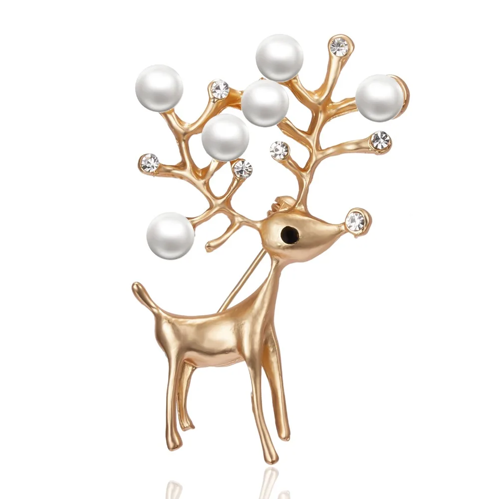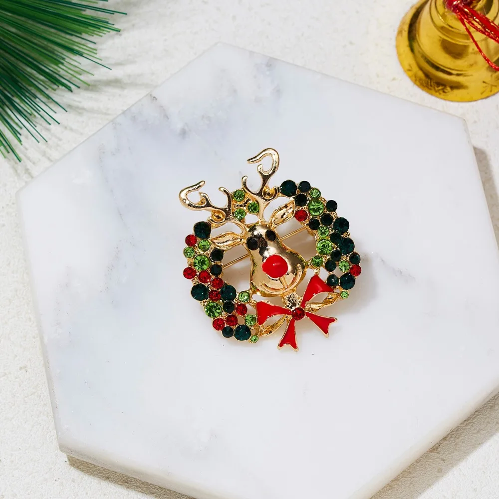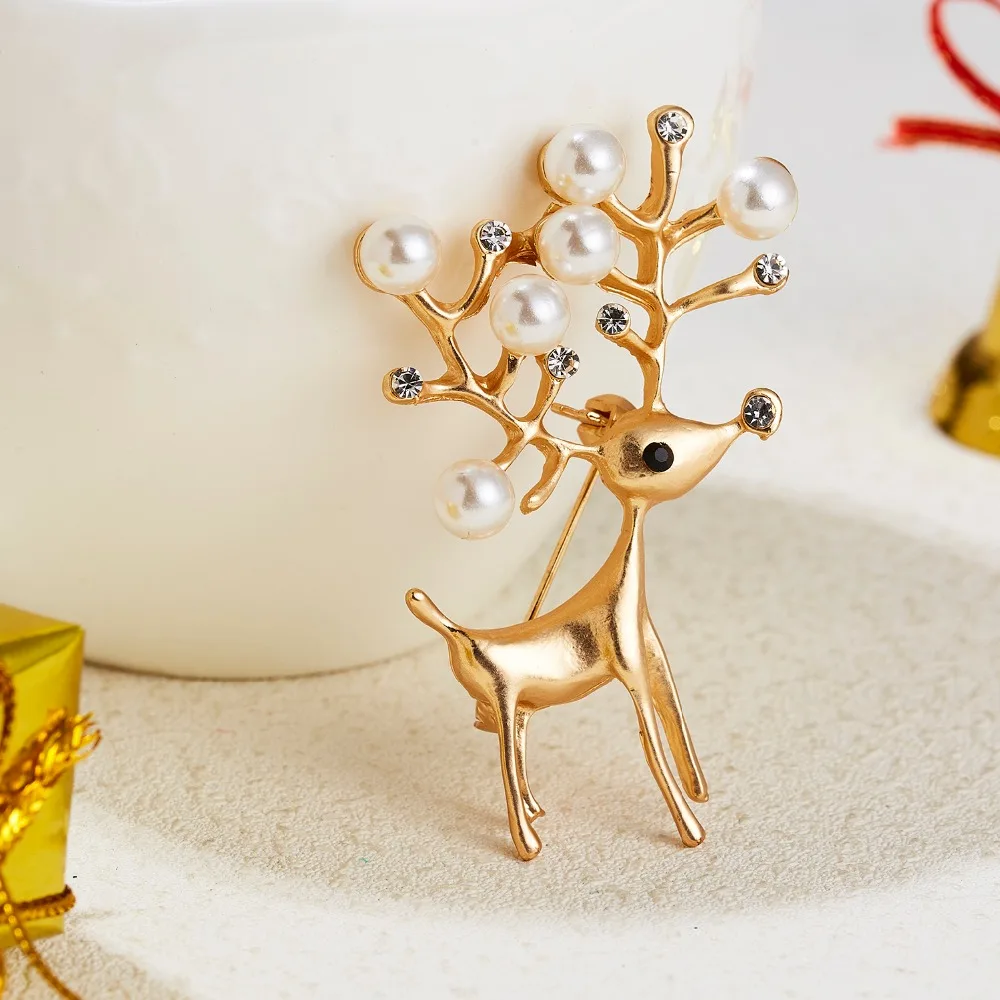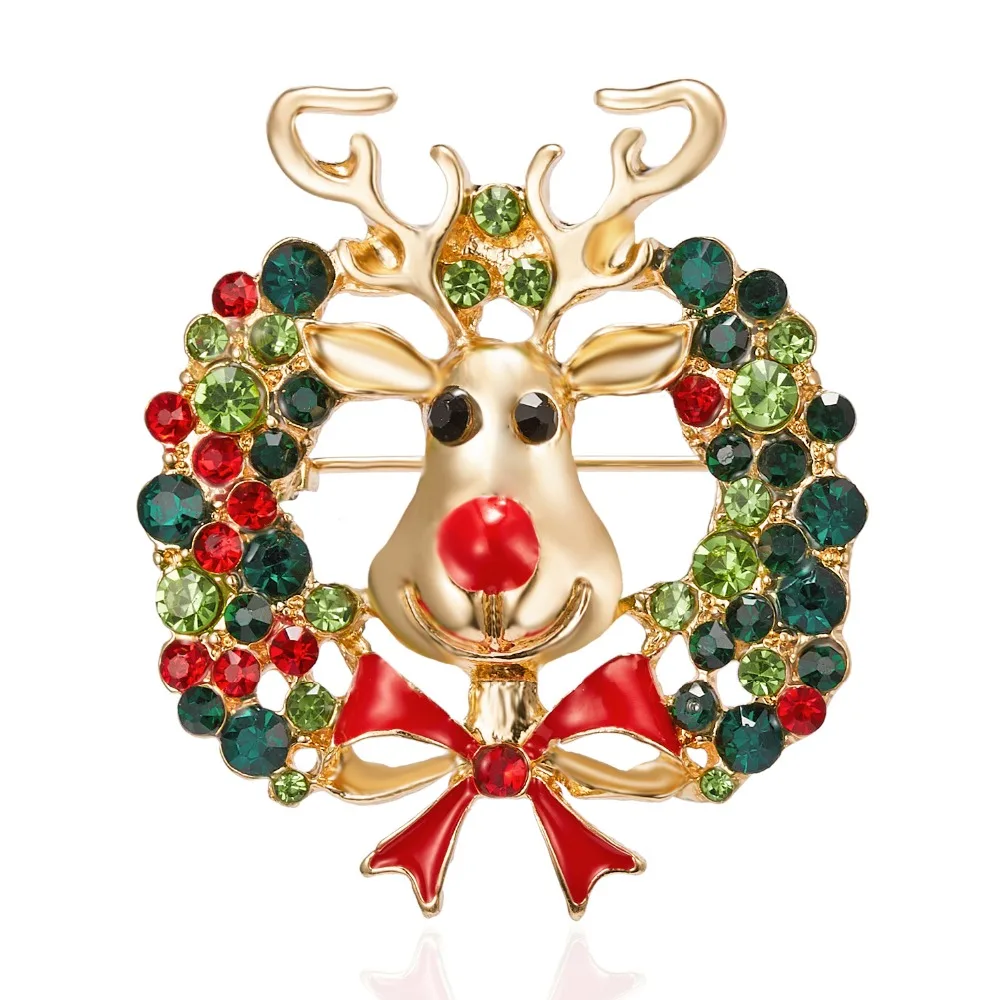 Стразы Броши с оленями для женщин рождественские олени булавки Роскошные эмалированные олени пальто животных корсаж модные рождественские украшения