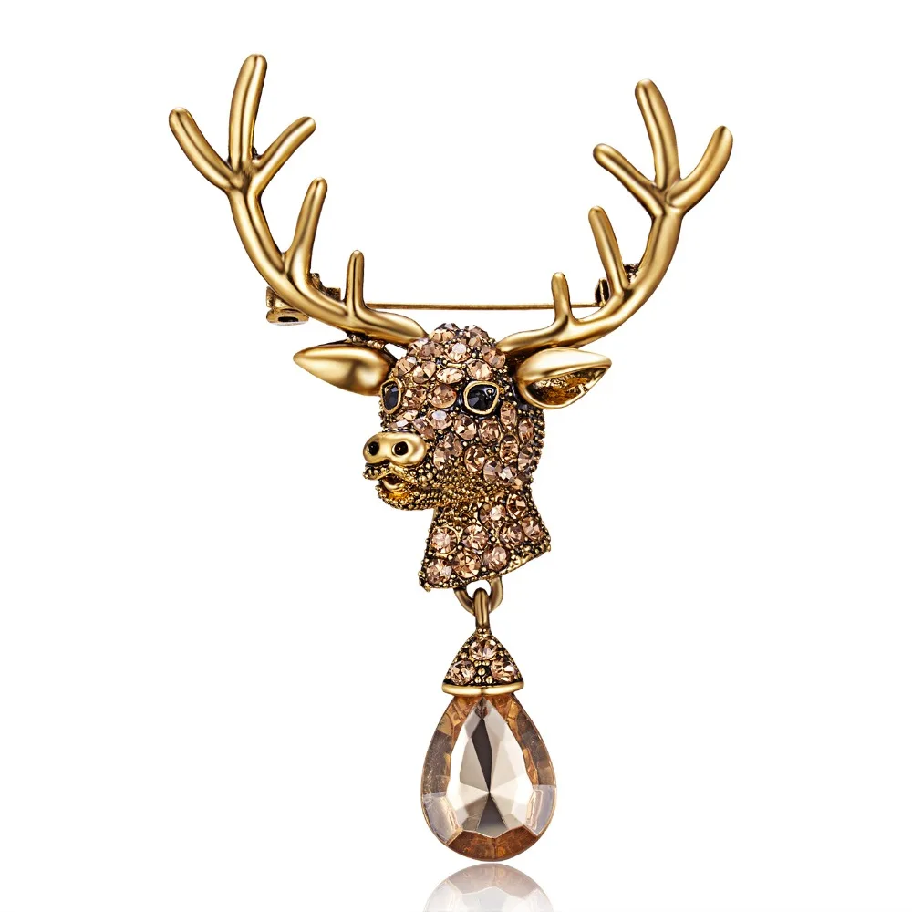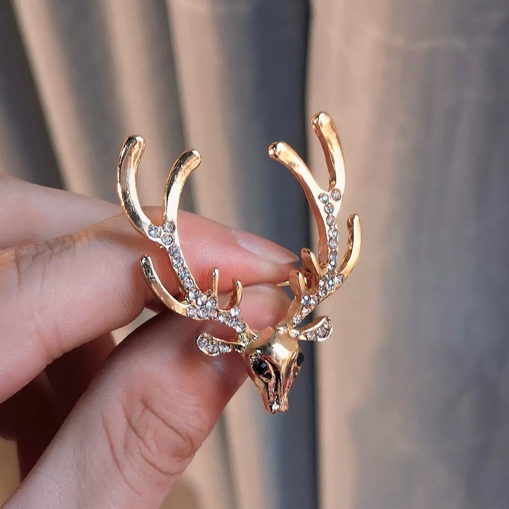 Rinhoo 1 шт. Стразы венок Лось голова оленя брошь эмалированная мет...