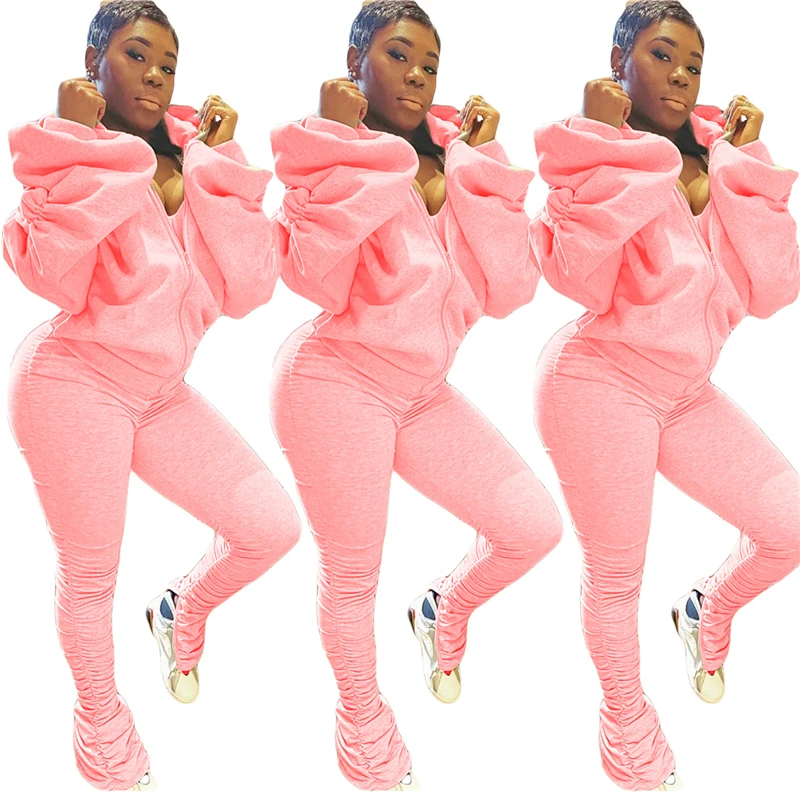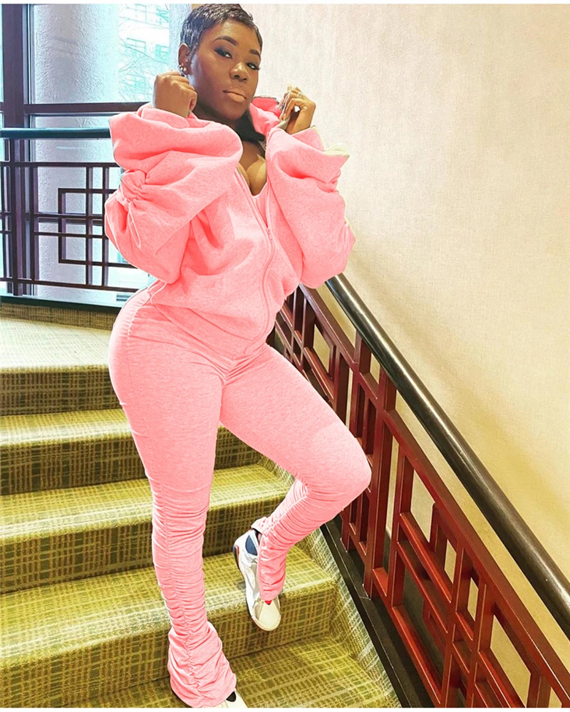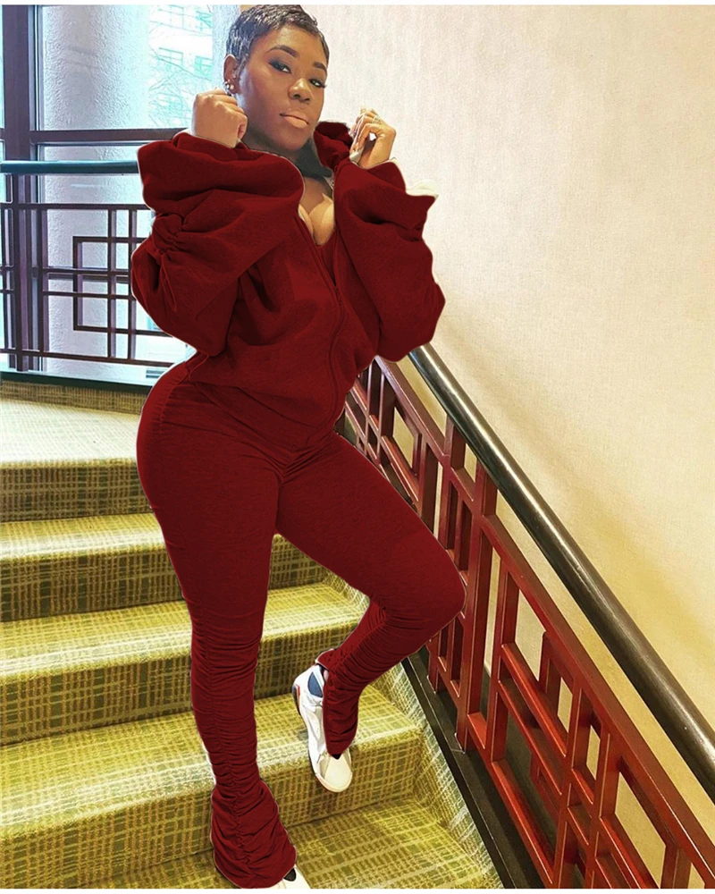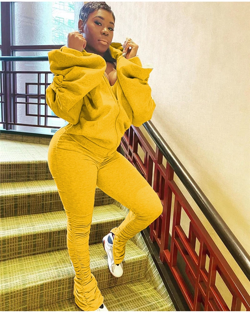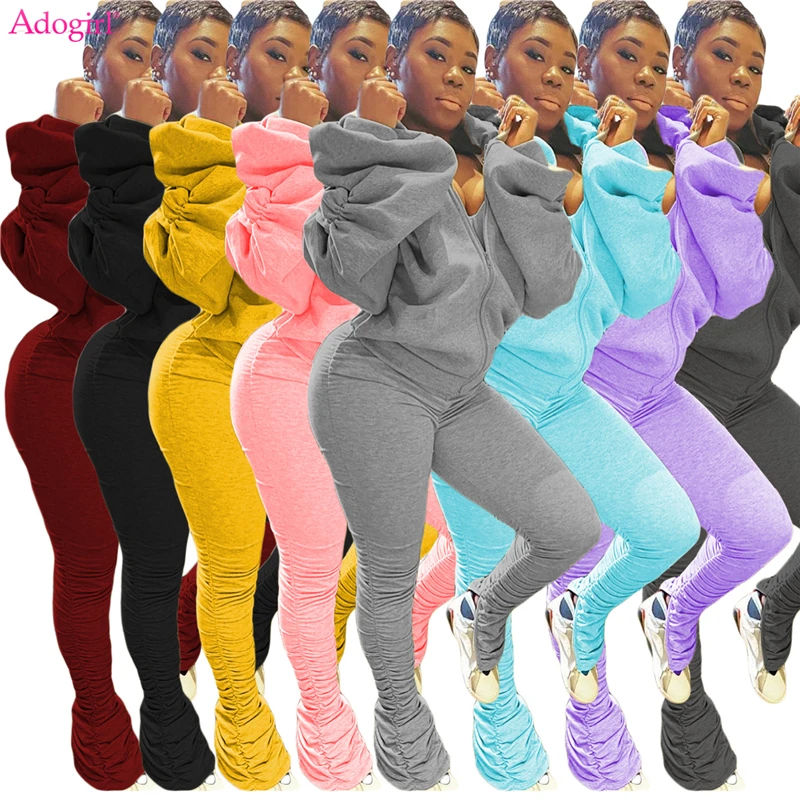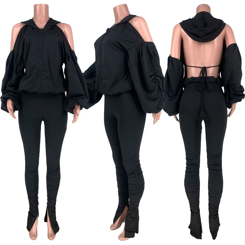 Женский Повседневный костюм с открытой спиной Adogirl, однотонный костюм из двух предметов с длинными рукавами-фонариками на молнии и капюшоном на осень и зиму 2020