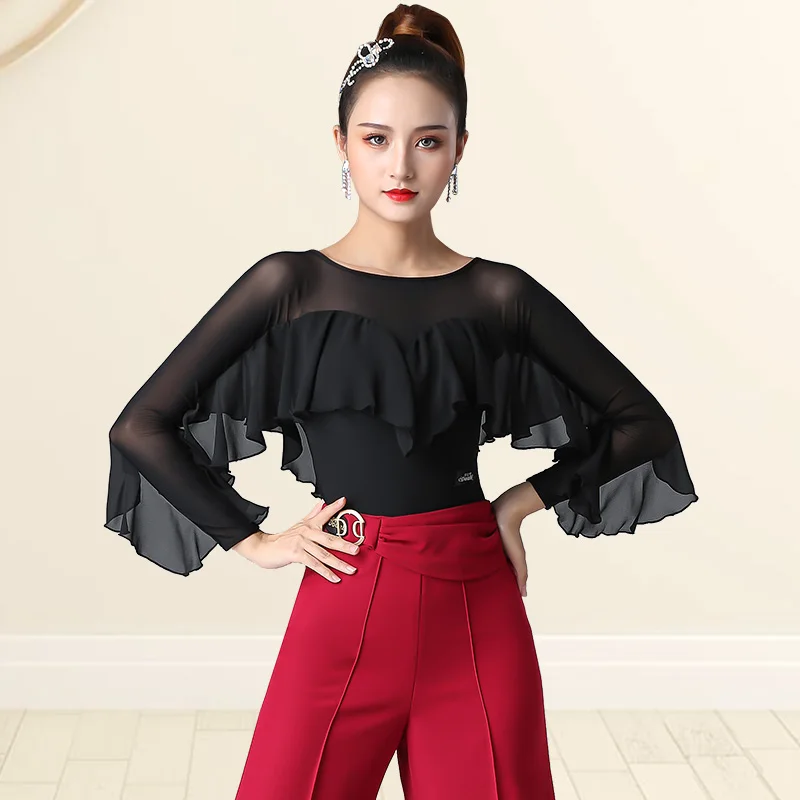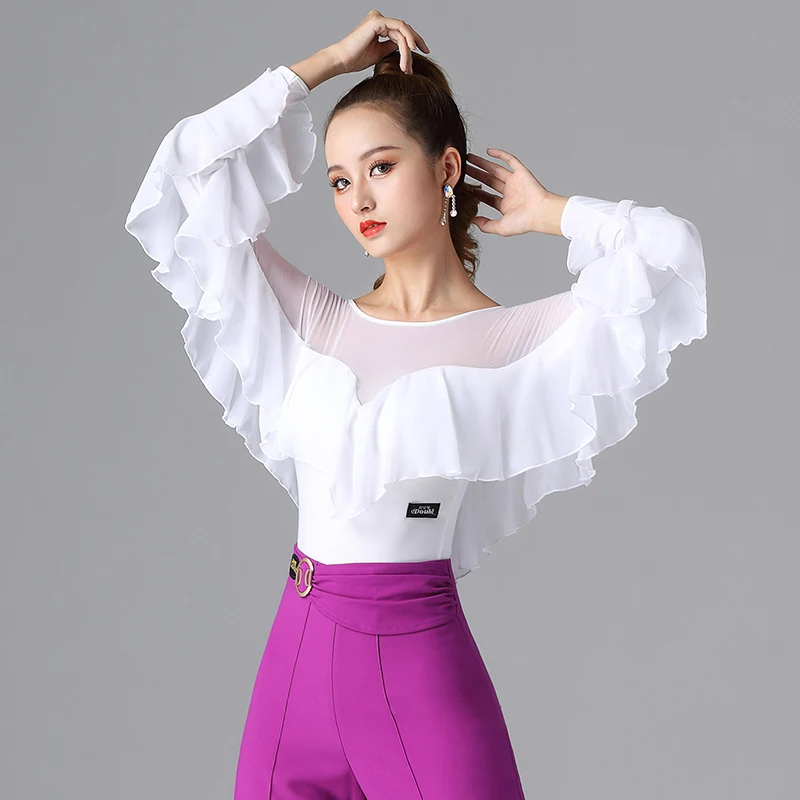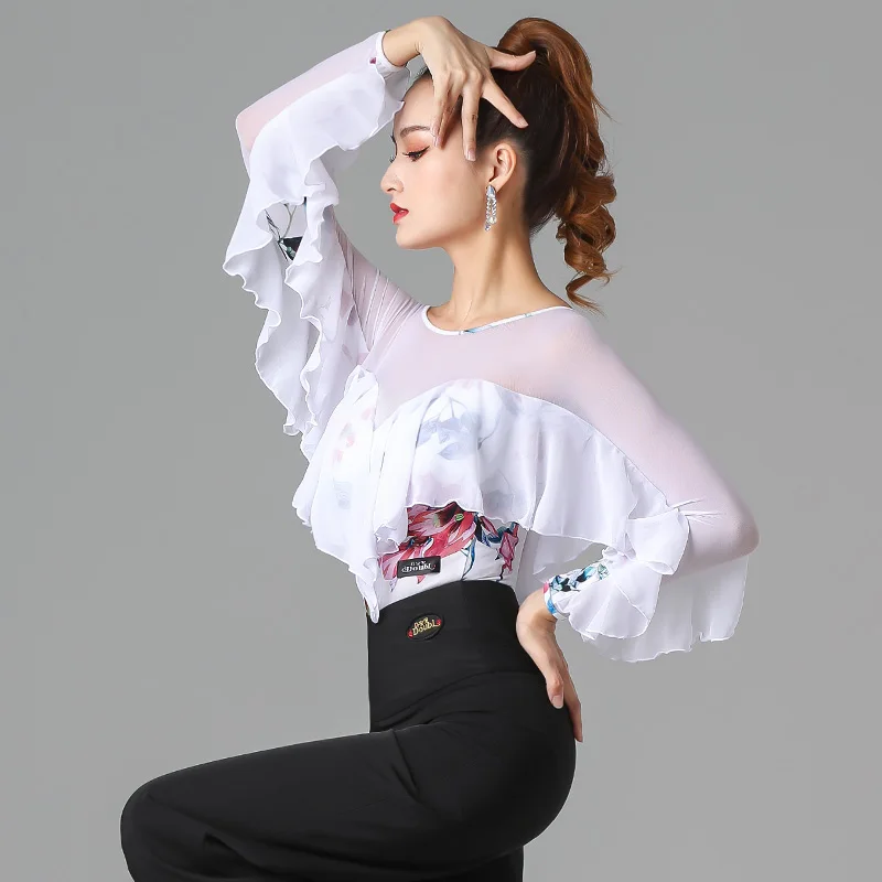 Женские топы для латинских танцев с длинными рукавами, современная танцевальная одежда вальс, Бальные танцы, одежда Румба латинский танец самба, костюмы DQS5580