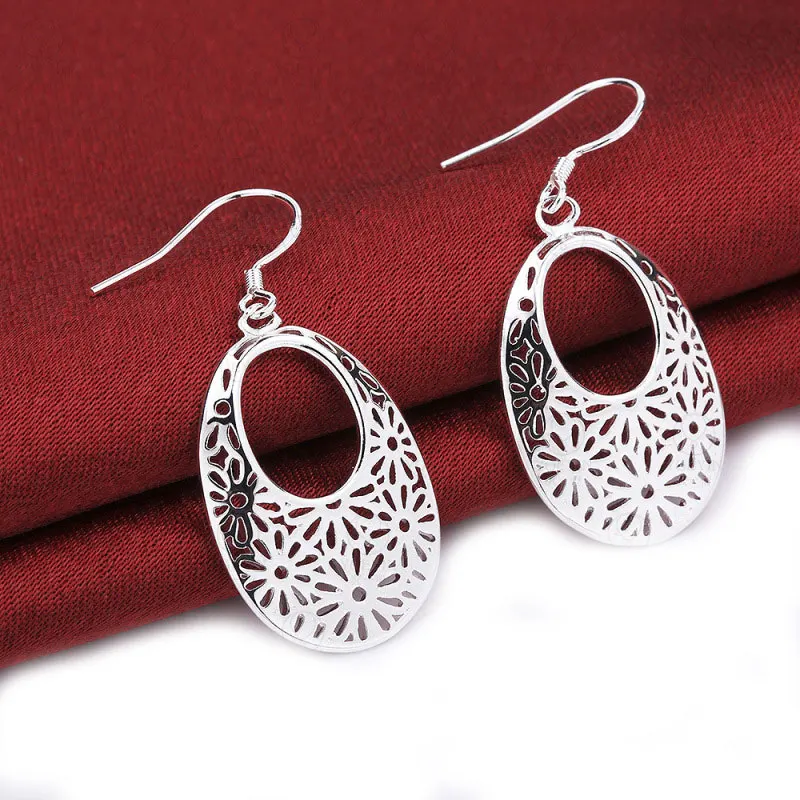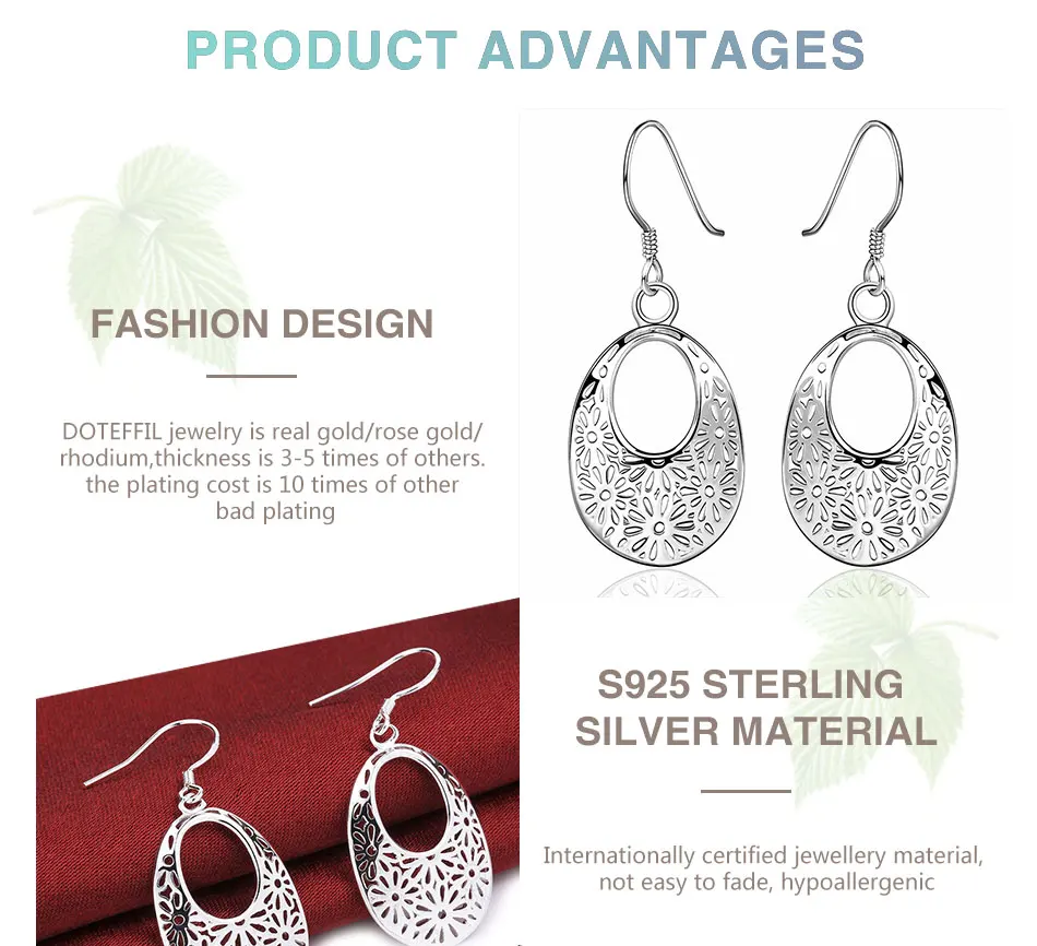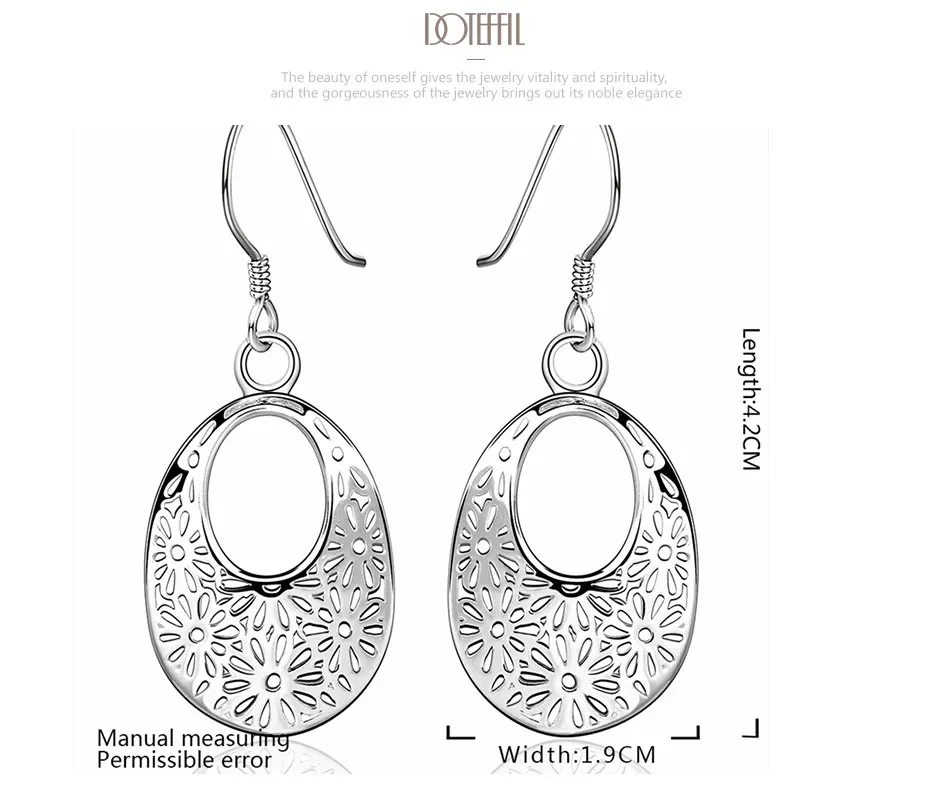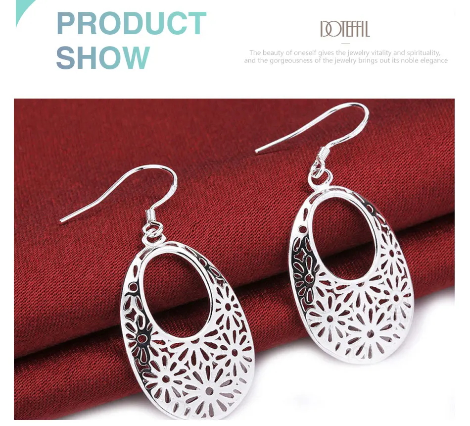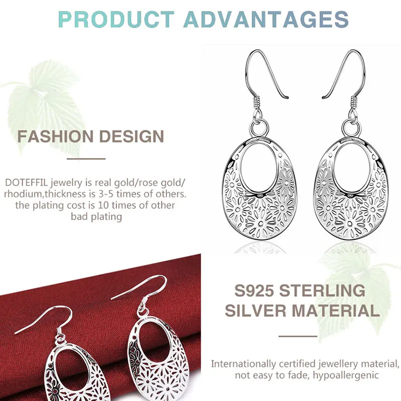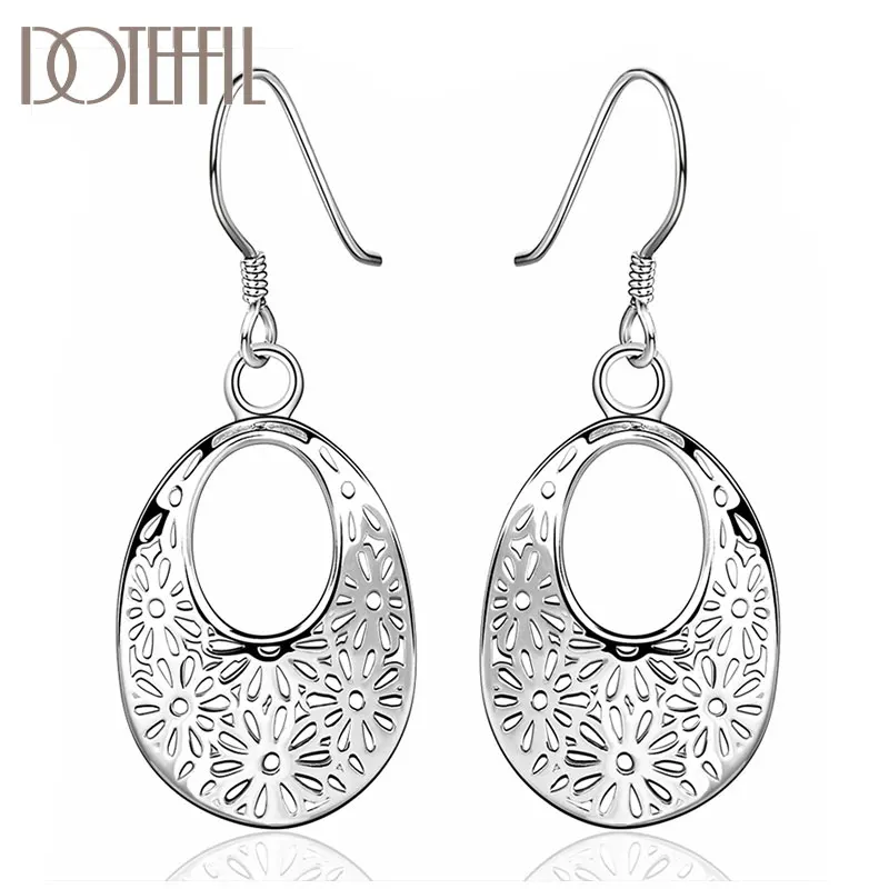 Овальные висячие серьги DOTEFFIL с узором из стерлингового серебра 925 пробы, очаровательные женские ювелирные украшения, модные свадебные и вечерние подарки