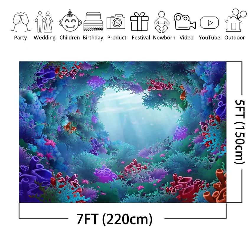 Фон Mocsicka с изображением Русалочки, кораллового куста для детского дня рождения, дня рождения, торта, стола, баннера