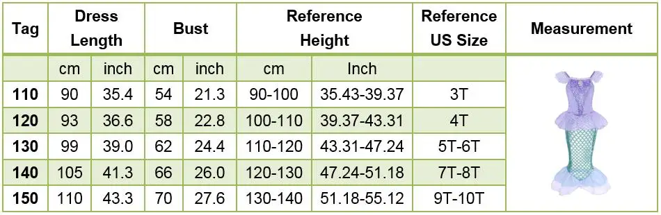 Название: летнее платье Русалочки для девочек; Костюм принцессы; Вечерние костюмы Ариэль на день рождения; Детская одежда; Карнавальный костюм для детей 3, 4, 5, 6, 8, 10 летНазвание отдела: платье для девочекСтиль: летнее платье для девочекТема: вдохновлено русалочкой АриэльПосылка: OPP сумкиРазмер: 110-120-130-140-150, каждое платье отличается, пожалуйста, проверьте детали или свяжитесь с продавцомРекомендуемый возраст: 3 4 5 6 7 8 От 9 до 10 летСодержит: ваш выбор + 1 OPP сумки