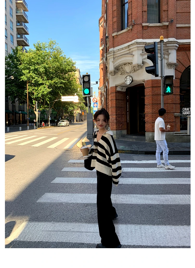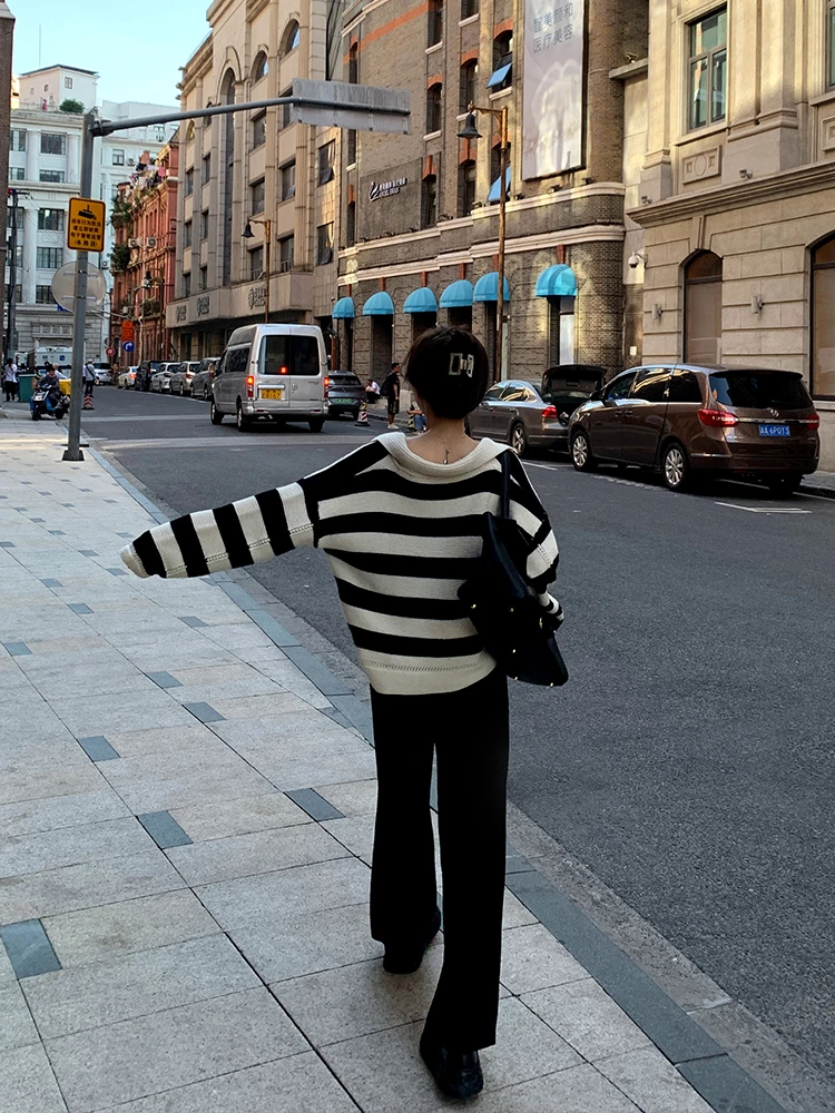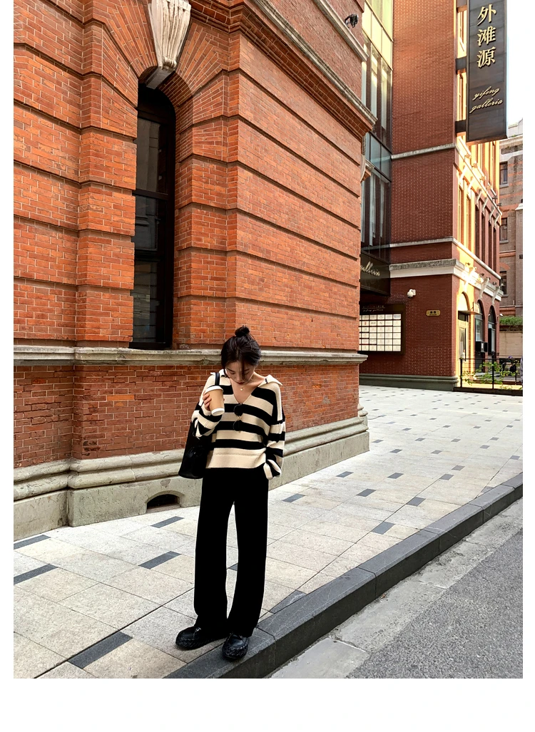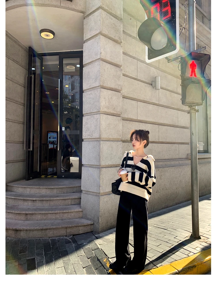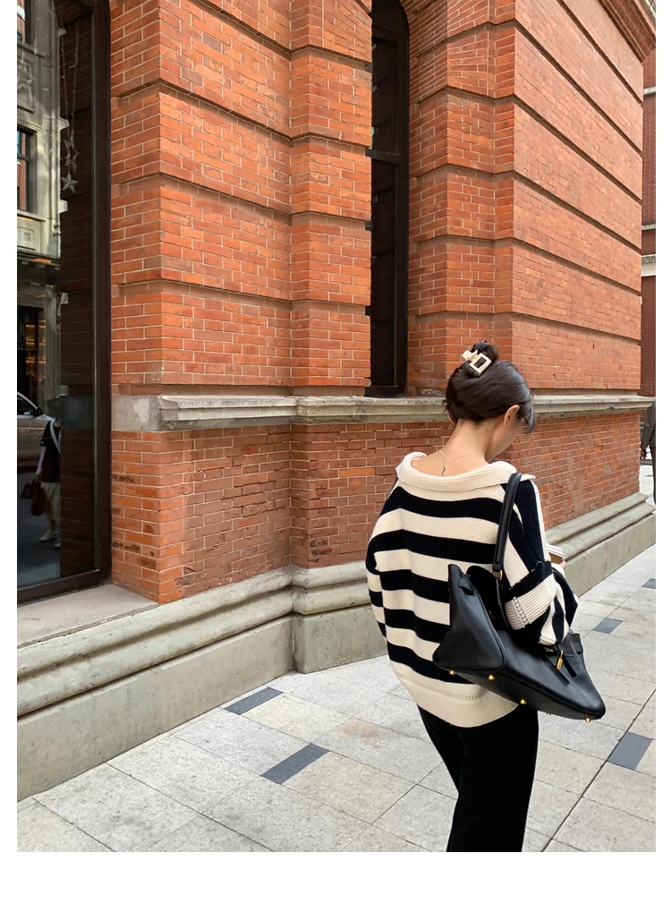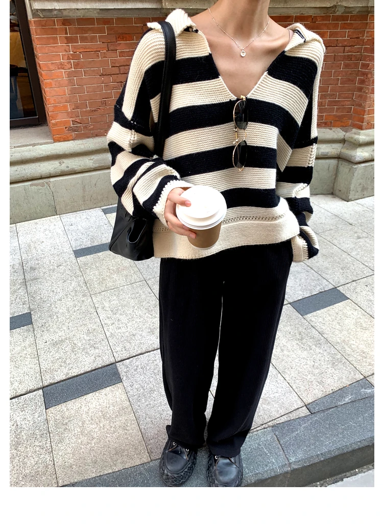 Свитер женский трикотажный в полоску, с воротником-поло, Осень-зима, SW1181, 2021