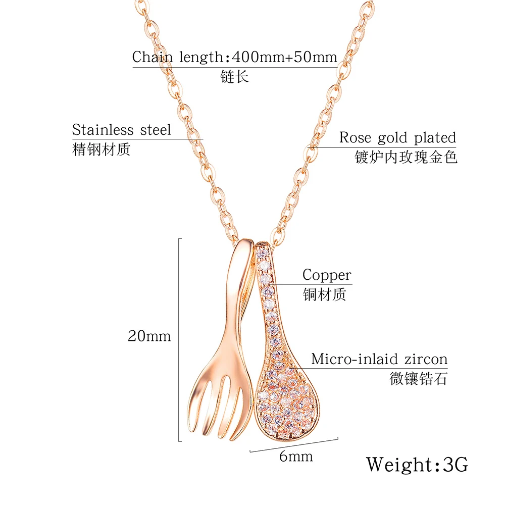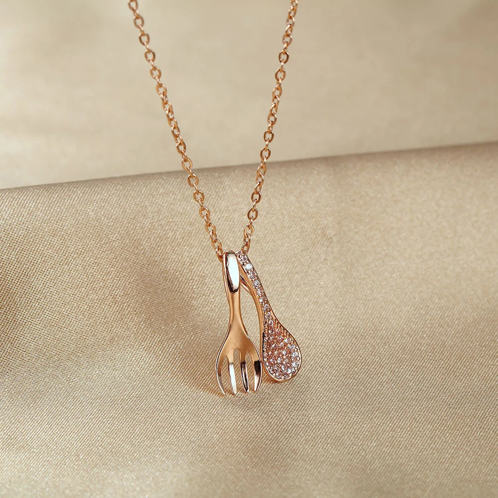 Yobest розовое золото цвет вилка колье в виде ложечки для женщин CZ цепь цветов радуги ожерелье Pandant циркония длинные кольца de moda