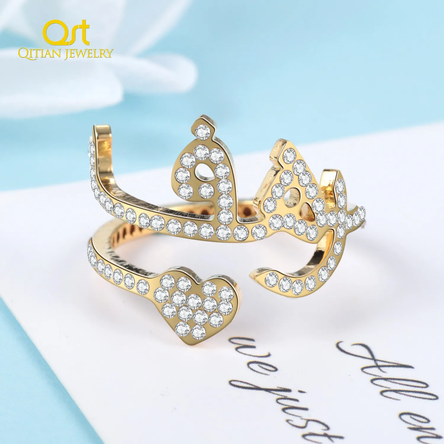 Кольца с именем, золотые кольца из нержавеющей стали, арабское кольцо с именем на заказ для женщин, блестящие украшения в форме сердца, не выцветают