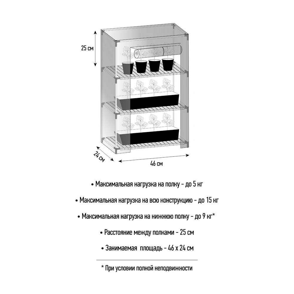 Парник на подоконник "Маргарита", 3 полки, 460х240х800 мм.