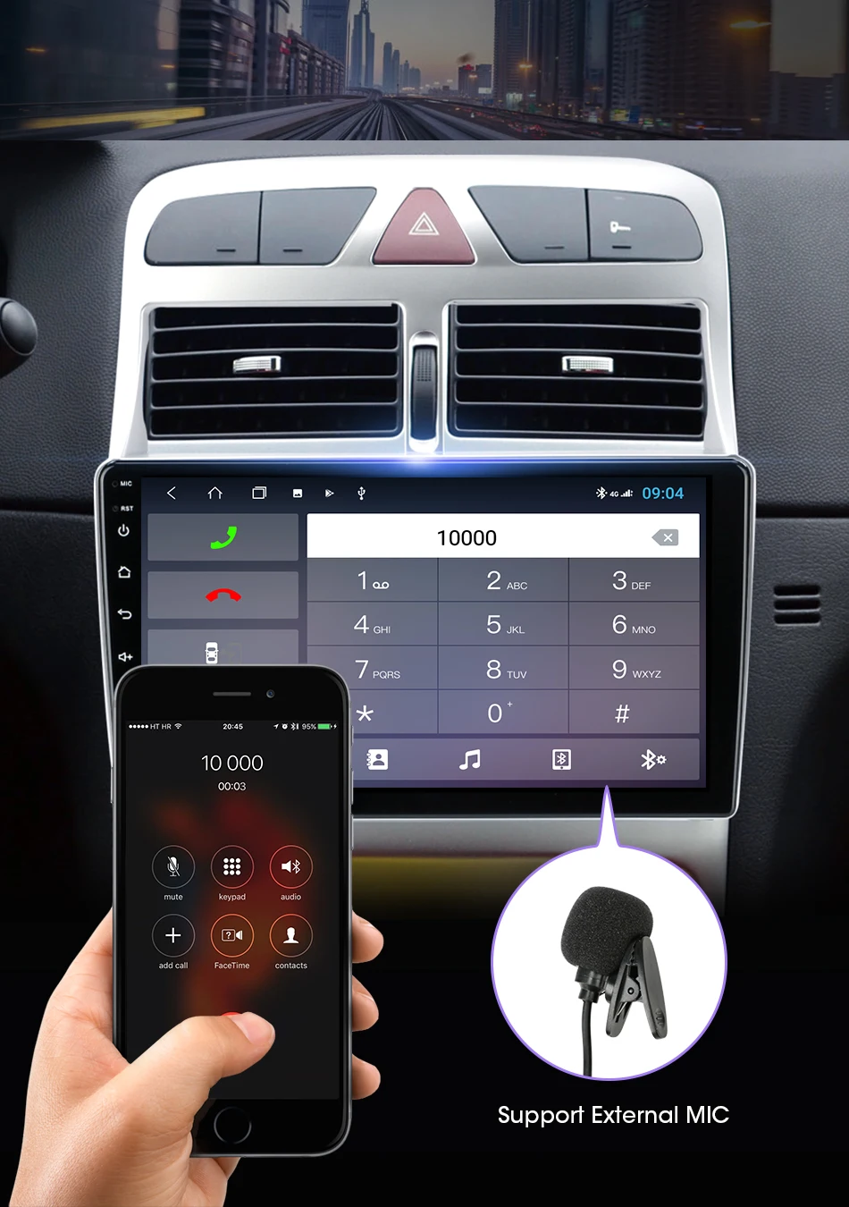 Поддержка подключения Bluetooth Наберите Bluetooth телефон, встроенный микрофон радио, даже если окружающая среда шумит, Радио поддерживает подключение внешнего микрофона, что может гарантировать качество вашего звонка.