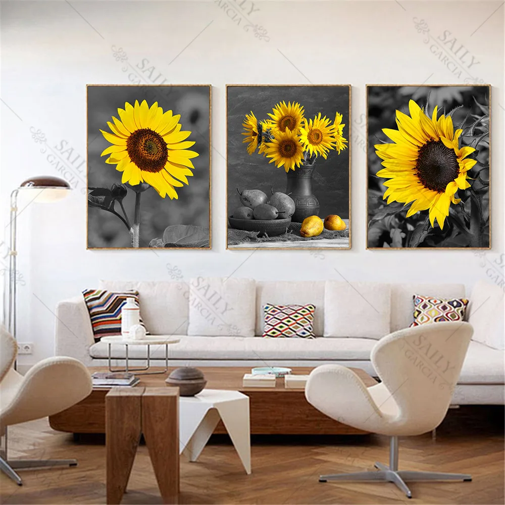 Постер с подсолнухами и печать на холсте, настенное искусство, винтажные картины для гостиной, Современный домашний декор, украшение