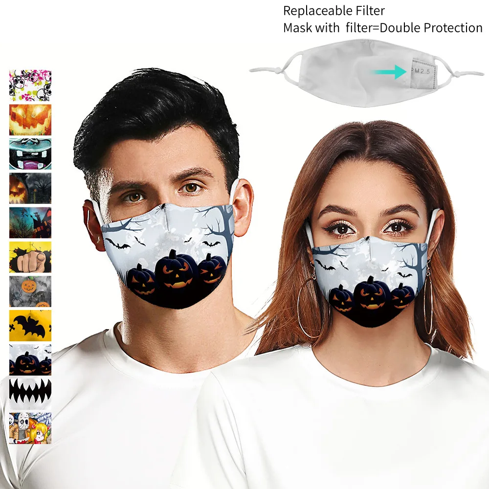 Маска для лица с принтом черепа для взрослых, маска для лица 2 Pm2.5 с активированным углем, ветрозащитная хлопковая маска, многоразовая маска для лица