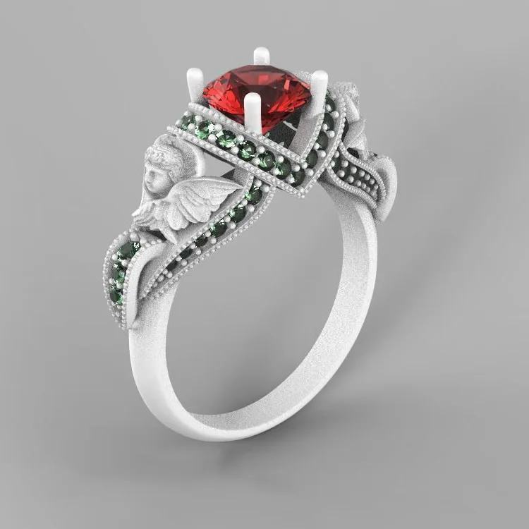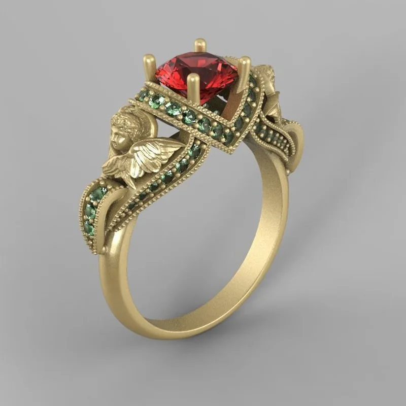 Кольцо с красным кристаллом, в форме маленького ангела, модные ангельские крылья