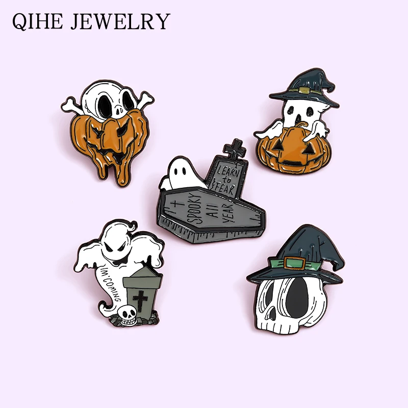Значок на Хэллоуин, с эмалью, в виде гроба, черепа, призрака, тыквы, готические значки, броши для женщин, мужчин, ювелирные изделия, подарок