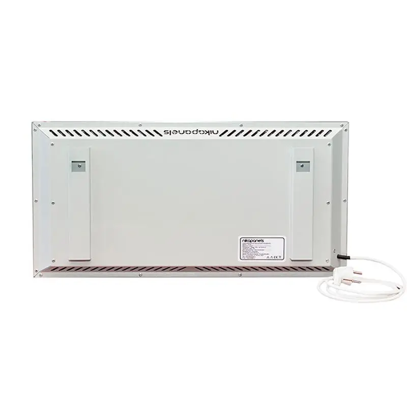 Электрические обогреватели Nikapanelsсобраны из экологически безопасных материалов. Лицевая часть панели сделана из керамогранита, способствующего равномерному рассеиванию лучей и эффективному прогреванию всех окружающих предметов. Задняя металлическая стенка оснащена конвенционнымиотверстиями. Отверстия отводят тепло и защищают стену от перегрева. В приборах совмещены конвективный и инфракрасный типы обогрева, что увеличивает эффективность. Тепло ощущается мягкое и приятное (как от русской печи).