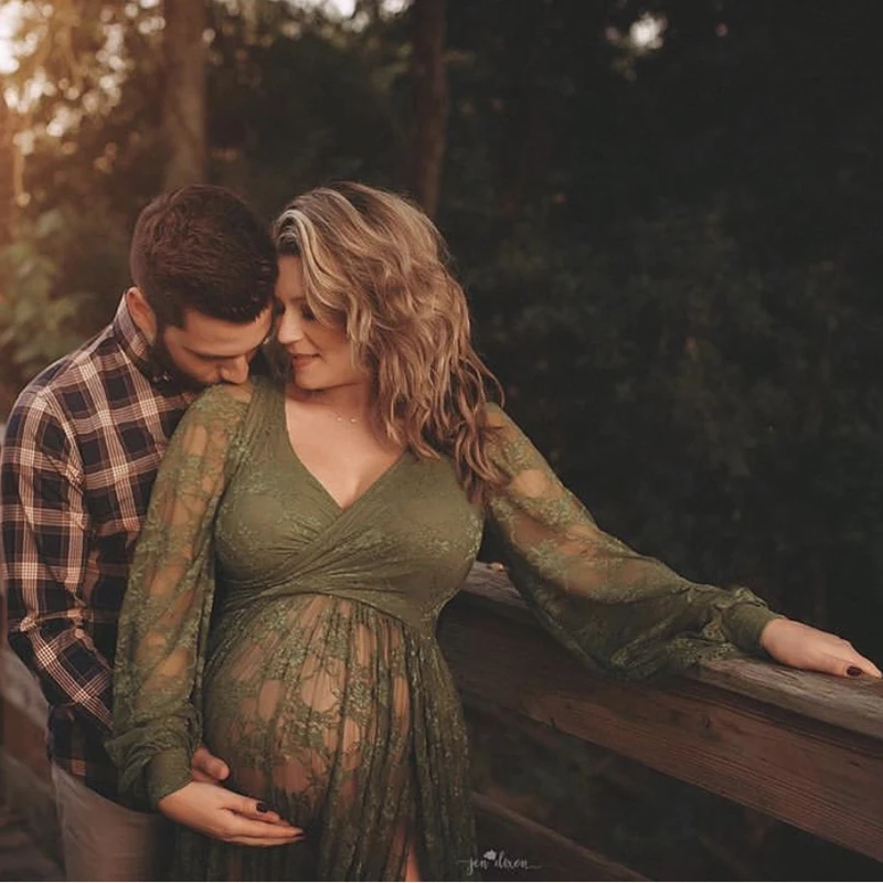 Приталенное кружевное платье для беременных с v-образным вырезом и открытой передней частью, платье для фотосъемки с длинными рукавами