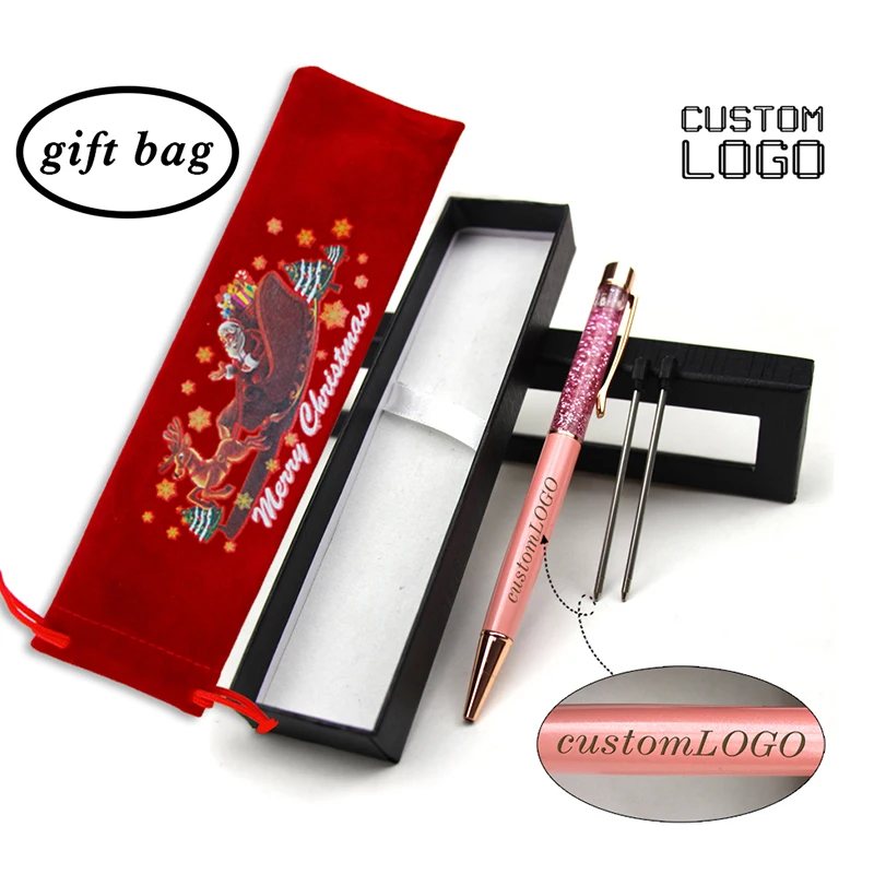 Рождественский подарок, ручка с логотипом на заказ, шариковая ручка из золотой фольги, металлическая, деловая ручка, креативная, с гравировкой, сумка для студентов канцелярские принадлежности ручка