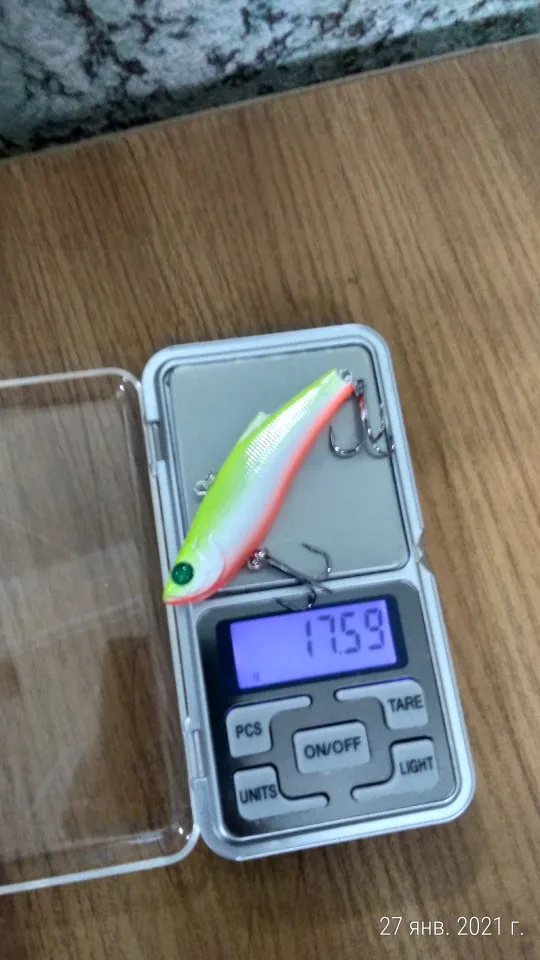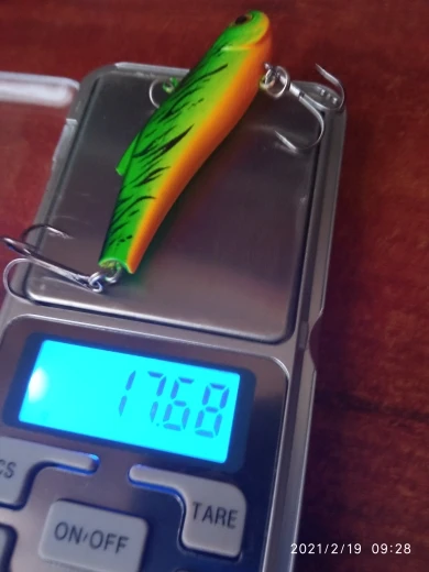 С момента оплаты товара, заказ до Ростовской области дошел за 14 дней. Качество на достойном уровне, крючки цепкие, заявленный вес соответствует описанию, имеет свечение в УФ. У нас аналогичные ратлины имеют стоимость 150-200 рублей. Трек отслеживается. Рекомендую данные приманки и продавца. Поэтому ставлю 5+. На фото изображение ратлинлв при искусственном освещении, естественном освещении, в УФ, вес тары и вес приманки.