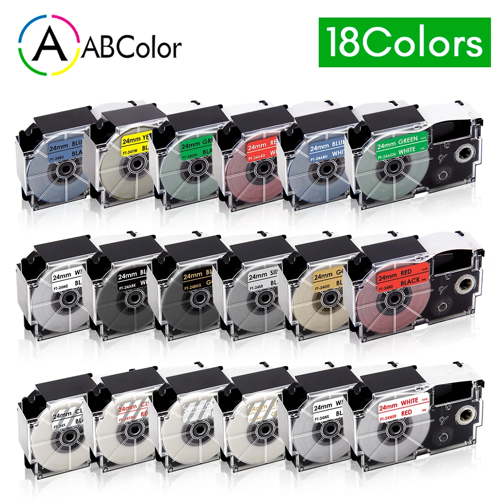 Название продукта: 24 мм XR-24ABK XR-24WE XR-24X лента для CASIO XR-24RD XR-24BU XR-24YW XR-24GN лента для этикеток многоцветная лента для принтера для CASIO KL-E300 KL-T70 производитель этикеток