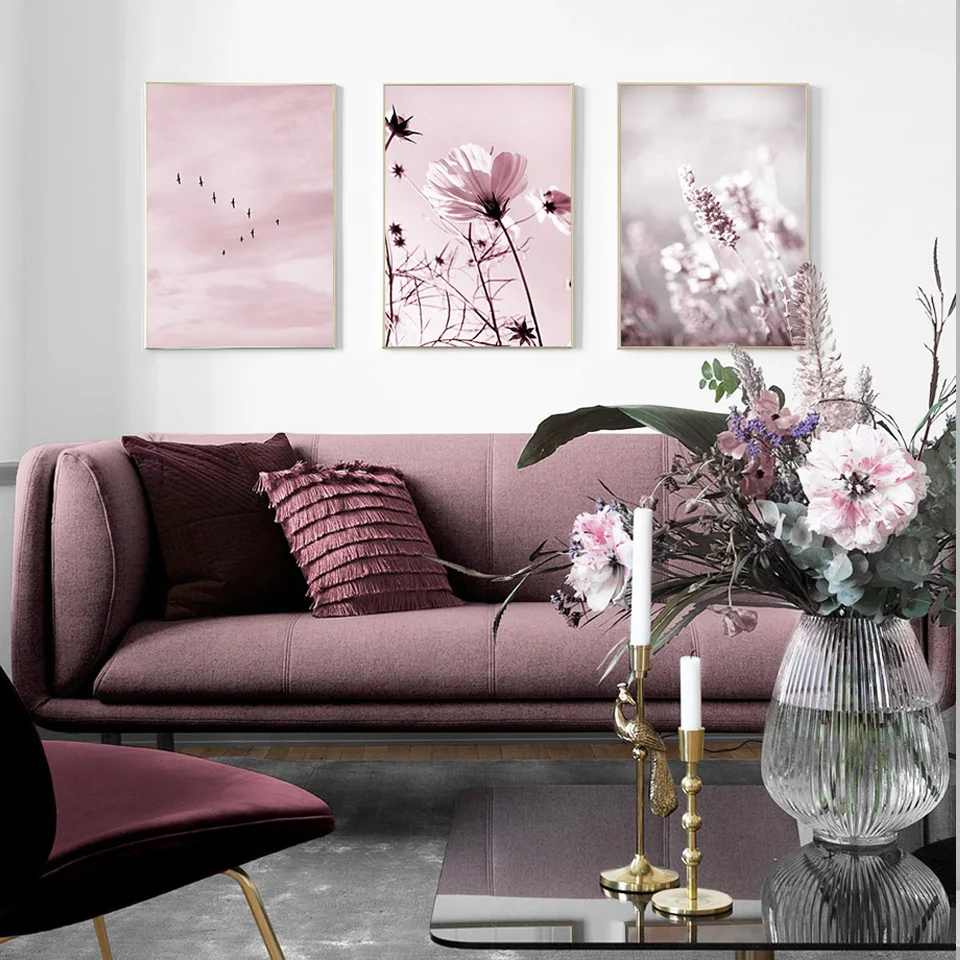 Триптих, алмазная вышивка, фиолетовый цветок, дерево, лебедь, озеро...