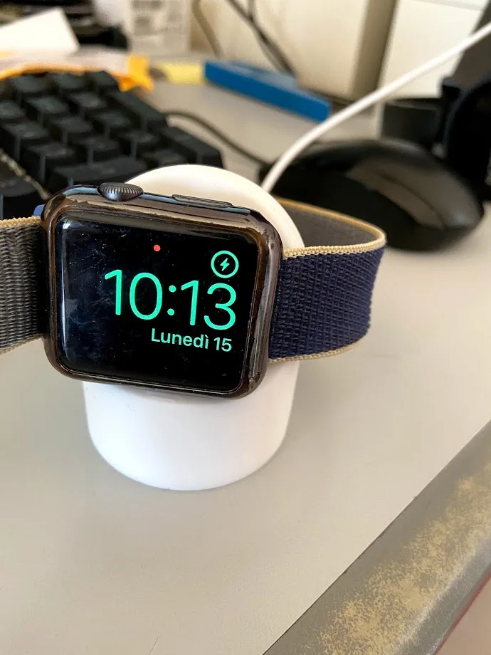 Товар заказал 11.06.2021. Покупал белую подставку для зарядки Apple Watch Series 6 за 259,09 р. Отправили товар на следущий день.Посылка пришла в магазин Пятёрочка рядом с домом в Воронеже за 19 дней. Трек номер отслеживался. Качество отличное, спасибо продавцу.Часы красные,хотел вначале взять красную подставку,но шнур в комплекте штатный для зарядки белого цвета.Пластик у подставки мягкий на ощупь и хорошо сама зарядка магнитит часы.Сидят очень здорово.Белый на белом фоне как будто штатный родной девайс.