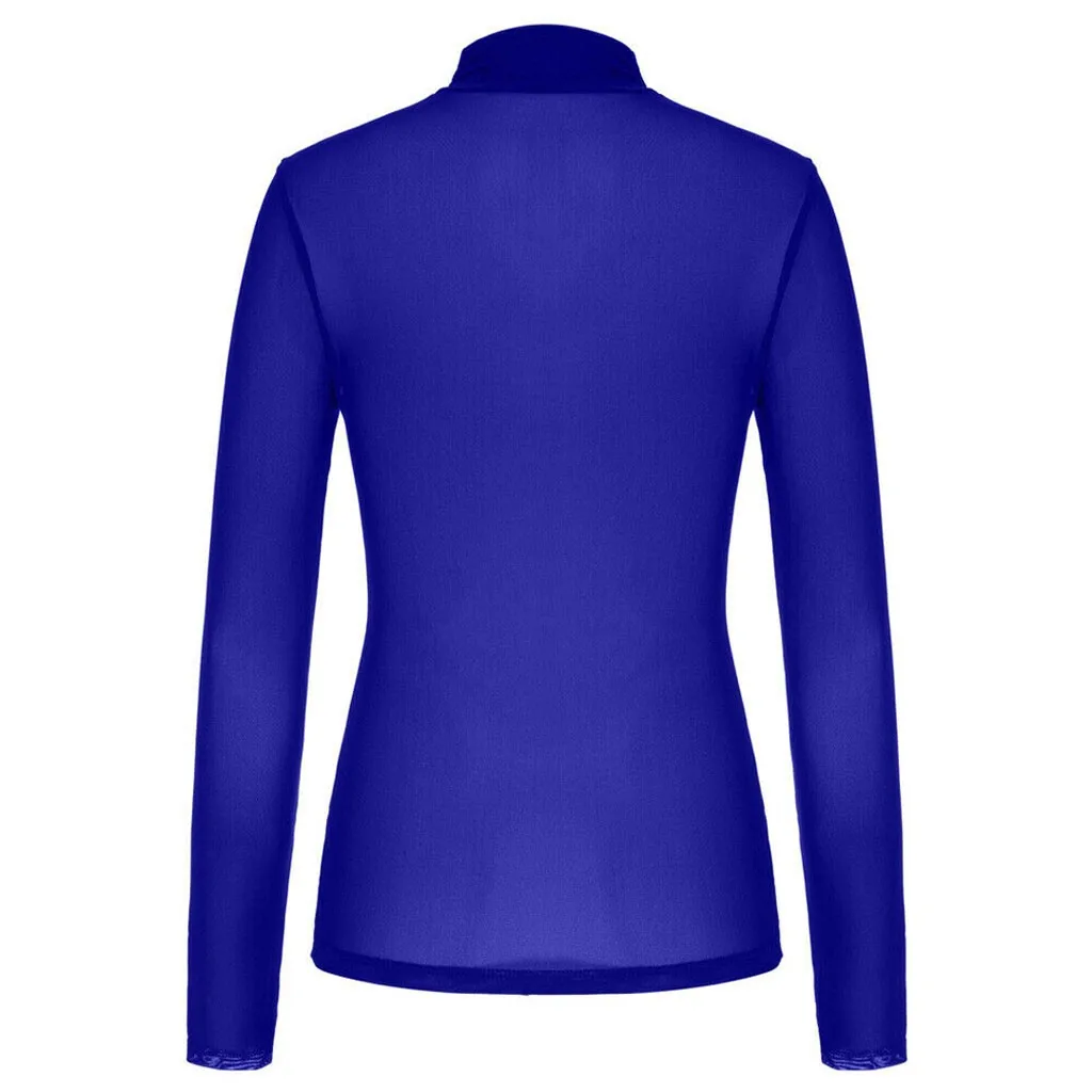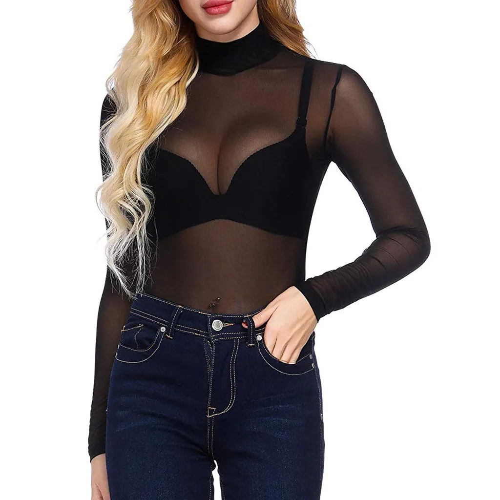 Осенняя Женская модная прозрачная сетчатая рубашка с высоким воротом, Топ с длинным рукавом, Повседневная Прозрачная Клубная облегающая одежда