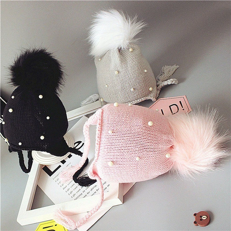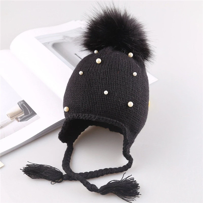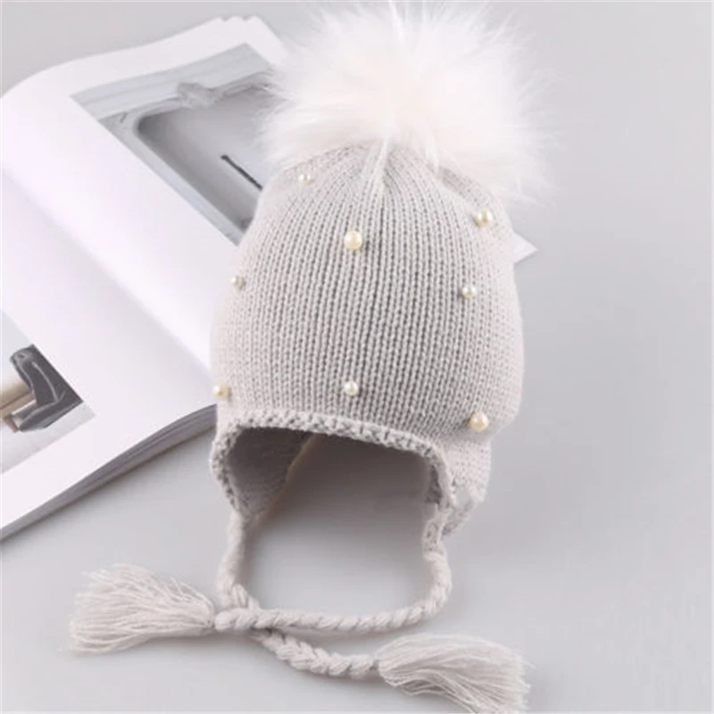 Комплект для новорожденных детей, для маленьких мальчиков и девочек милые красивые шапочки с меховыми помпонами для вкладыши Перл крючком Теплые зимние вязаные шапки Кепки