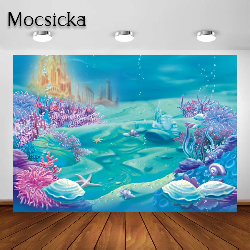 Mocsicka фон для фотосъемки с изображением морского замка русалки принцессы малыша вечеринки на день рождения фон для фотосъемки фотобудка