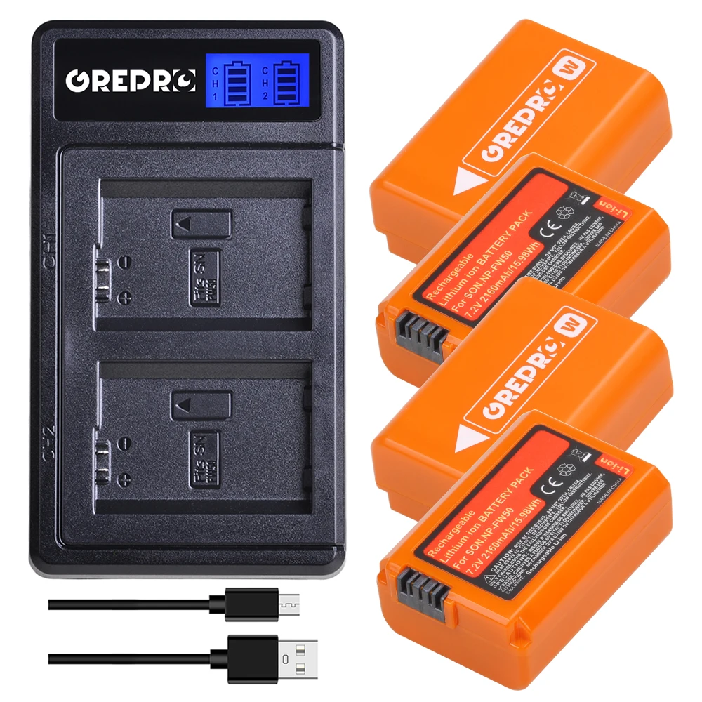 4 шт., аккумулятор для Sony Alpha a6500, с двумя USB-портами