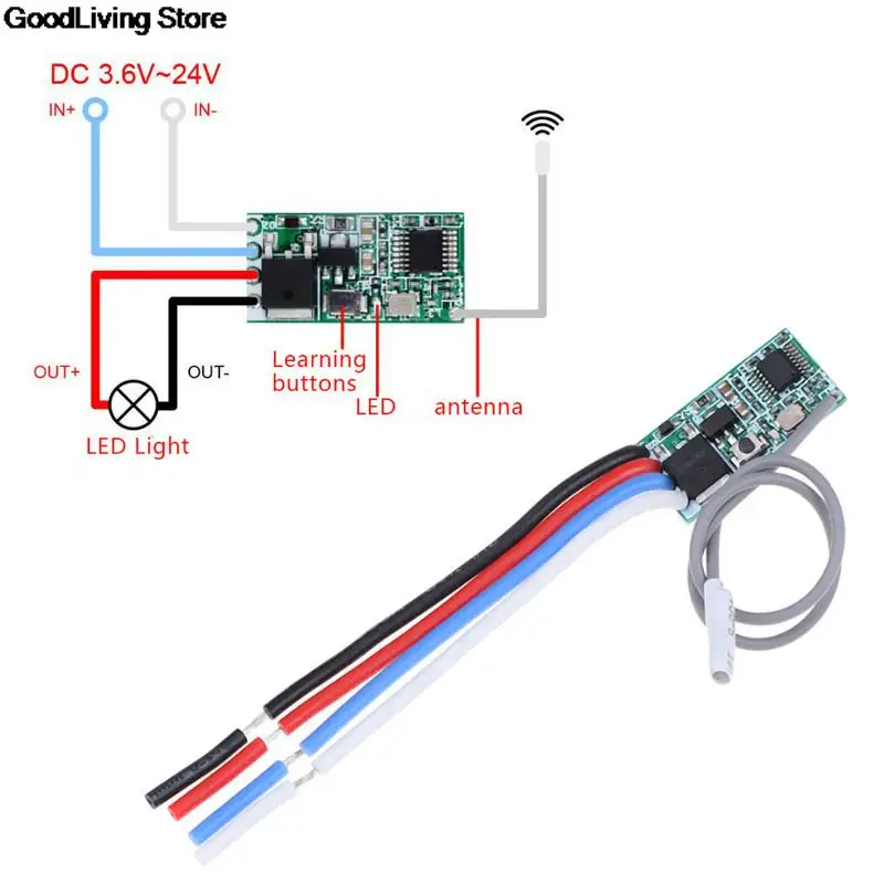 Особенности:Беспроводное управление Светодиодная лампа строка, Рождественская елка световая строка, выключатель управления светомРабочее напряжение большого диапазонаСверхнизкое энергопотребление, Высокочувствительный откликСпецификация:Рабочее напряжение: 3,6 В ~ 24 В постоянного токаМаксимальная нагрузка: 2 АСтатический ток: 3,6 мА ~ мАРабочая частота: 433 МГцЧувствительность приема: ≥ -107 дБмВыход в ~ 24 В постоянного токаРазмер: 22,5 мм x 11 мм x 8 мм (длина × ширина × высота)Мини-размер, поддержка формата кодирования 1527, обучающий кодВход: 3,6 В ~ 24 В постоянного токаВыход: 3,6 В ~ 24 В постоянного токаРежим модуляции: ASK (Супергетеродин)Размер внешнего вида: 22,5 мм x 11 мм x 8 мм (длина × ширина × высота)Количество сохраненных пультов управления: ≤ 10Режим работы: Мгновенный, переключатель, режим фиксацииСтиль обучения: кнопка обученияРабочая температура: -20 градусов 80 градусовПосылка:1 шт. * Модуль приемника выключателя света