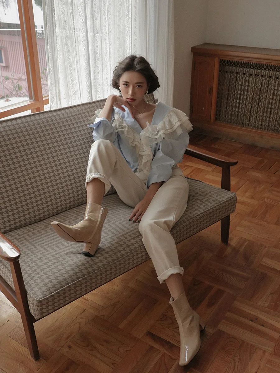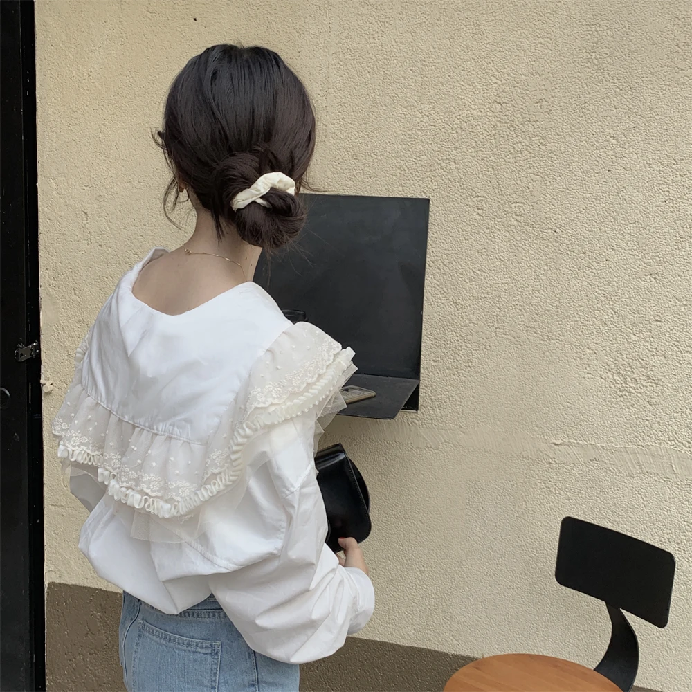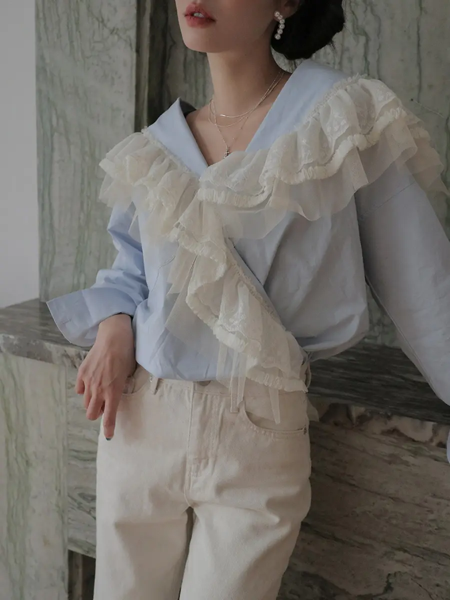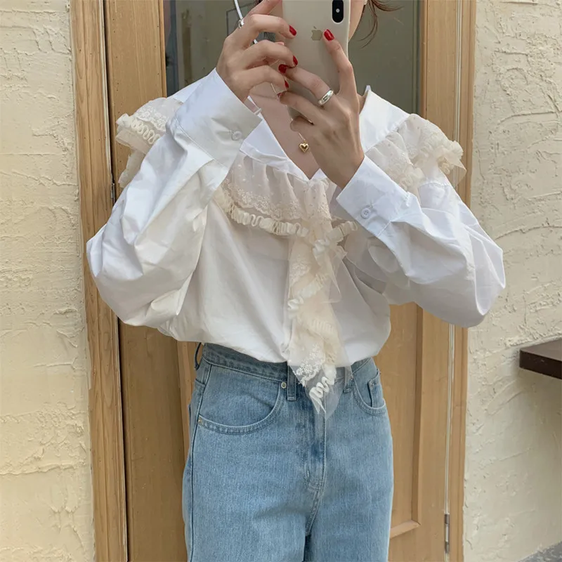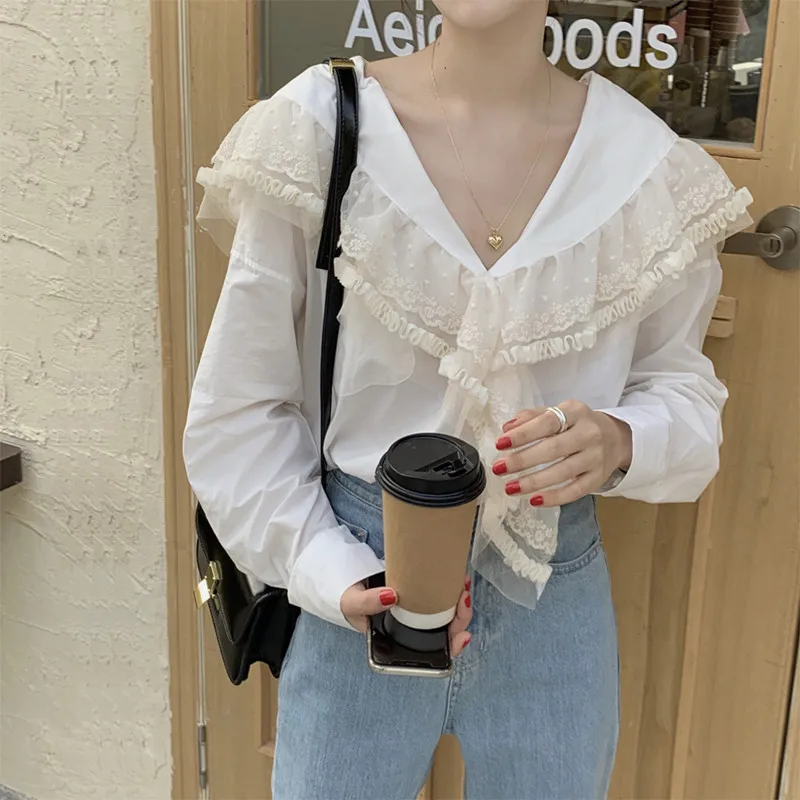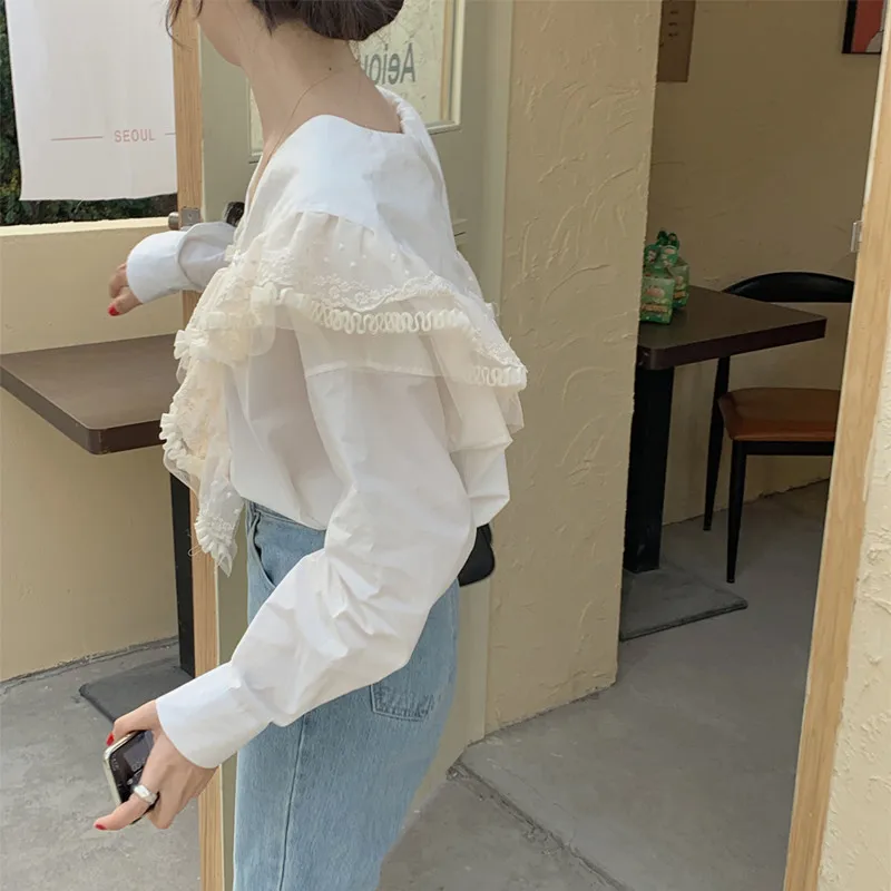 Блузка Alien Kitty Женская с V-образным вырезом, Повседневная рубашка в Корейском стиле, мягкая однотонная модная шикарная блузка с кружевом и оборками, 2021
