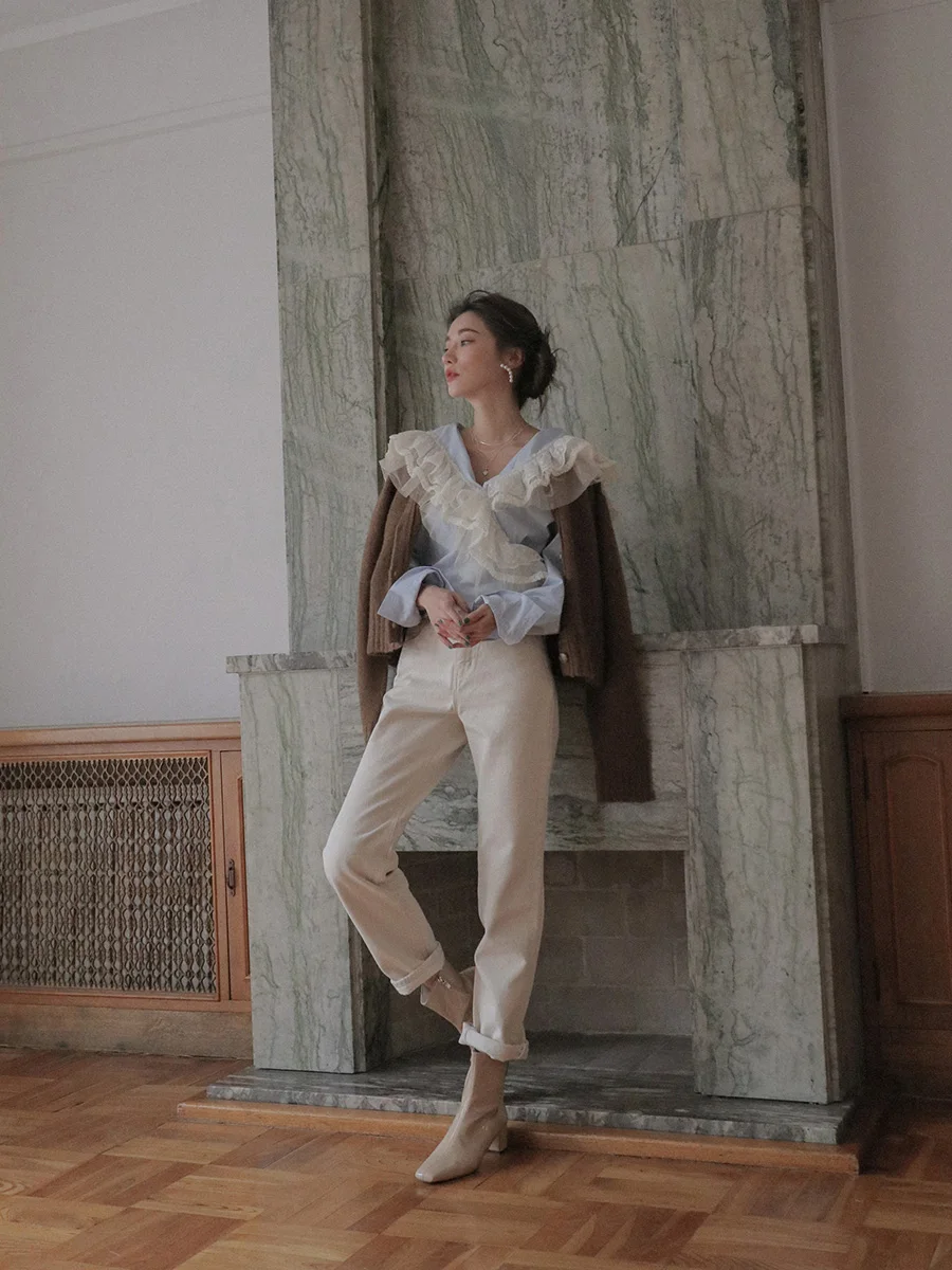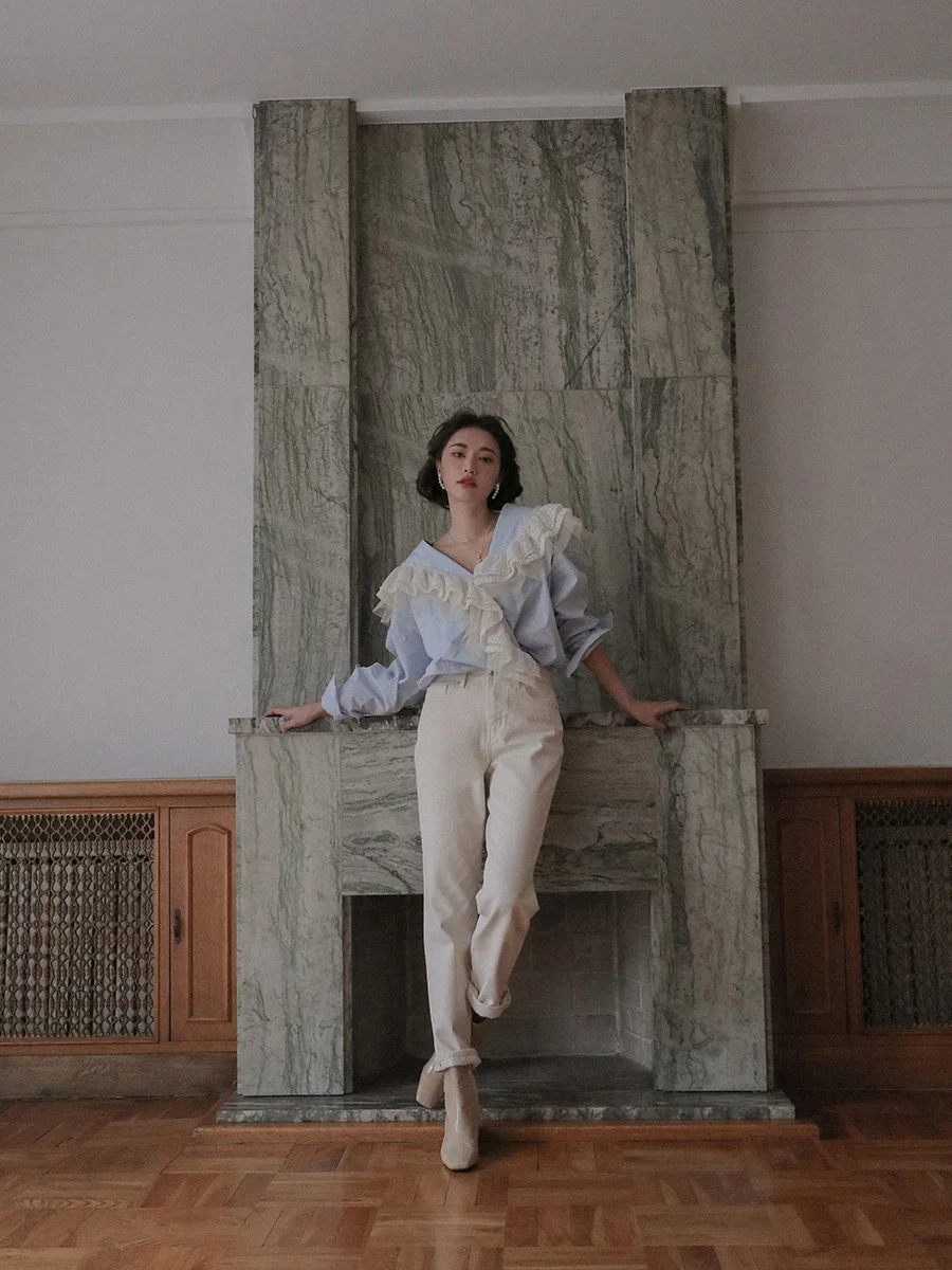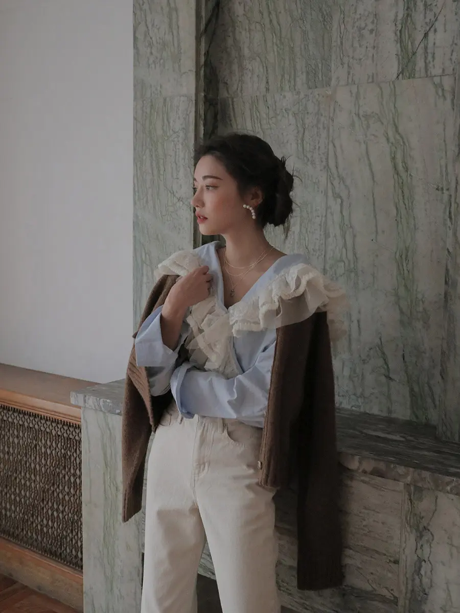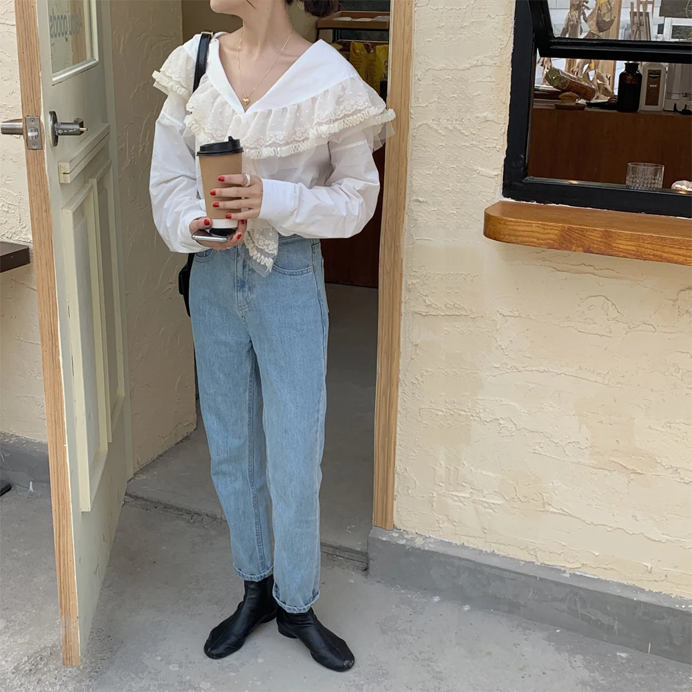 Блузка Alien Kitty Женская с V-образным вырезом, Повседневная рубашка в Корейском стиле, мягкая однотонная модная шикарная блузка с кружевом и оборками, 2021