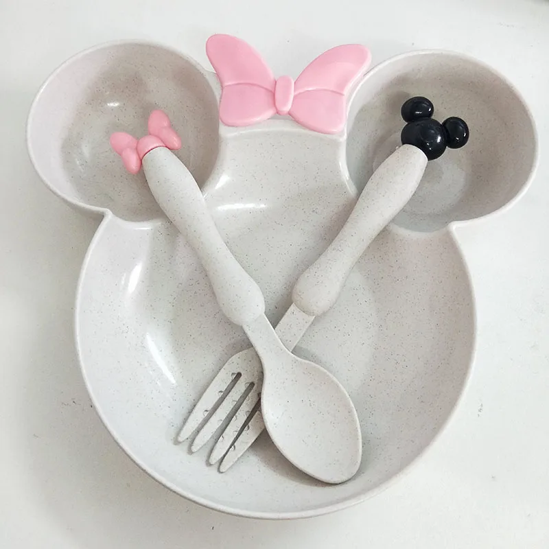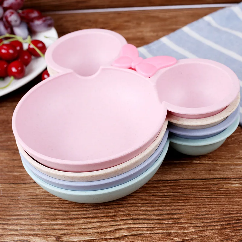 Набор посуды из пшеничной соломы для детей, детская мультяшная тарелка, тренировочная чаша, ложка, вилка для родов
