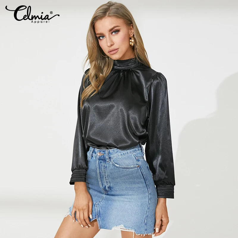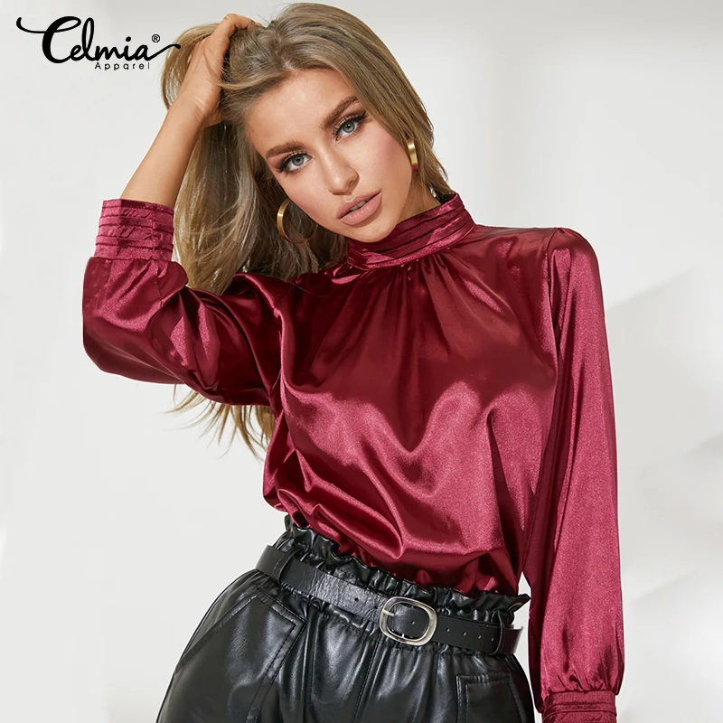 Модная атласная блузка Celmia 2021, женские элегантные офисные топы...