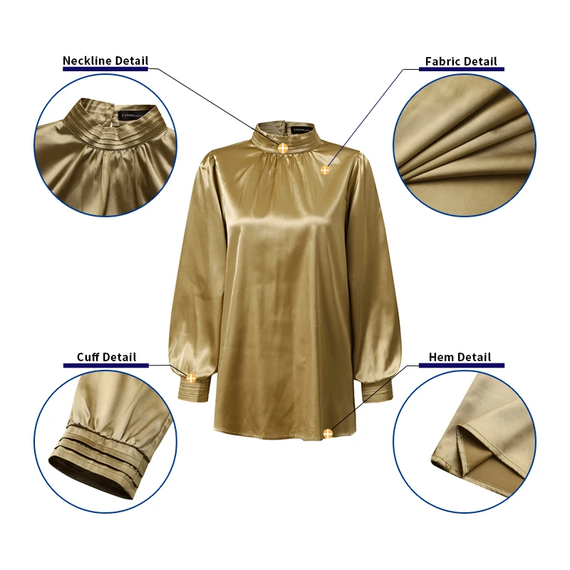 Женская атласная блузка, с высоким воротником, осенняя, 2021
