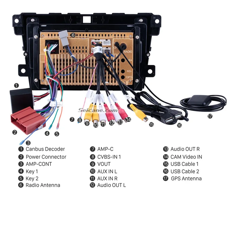 Mazda CX-7 2008 дорестайл 2,3 turbo c BOSE. Удалось заставить устройство работать, но очень неочевидным путём: необходимо на усилитель подать 12V - без этого звука не будет совсем. На фишке "из коробки" пустышка, пришлось паять. Canbus автоматом не подцепится - нужно зайти в инженерное меню (пароль 8888), выбрать наверху слева параметр Protocol, далее слева выбрать пункт Reise, затем справа выбрать mazda, затем mazda3\6\cx-7 и перезагрузить устройство. После всех этих действий заработает и управление с руля. Звук, если честно, хуже штатки, особенно радио. Плюс ко всему, в том же инженерном меню пришлось понизить уровень усилителя со 100 до 20, иначе колонки начинали бубнеть как из бочки. Время на бортовом компьютере не настроить. И да, стоит перепаять еще один проводок для запуска ГУ на ACC, иначе усилитель постоянно будет включен и слопает ваш аккумулятор за день.
