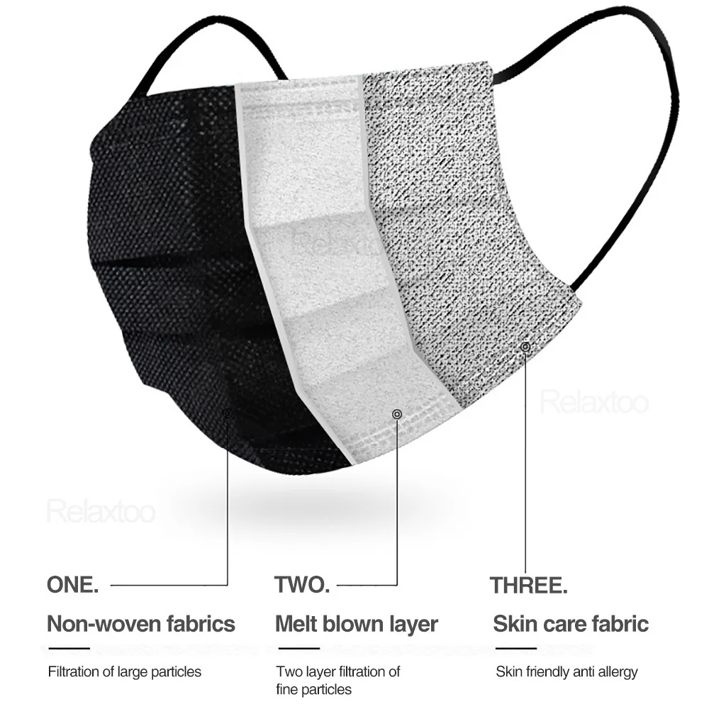 Маски одноразовые из нетканого материала для взрослых, эластичные маски с петлями для ушей, 3 слоя пылезащитной марли, голубыеоранжевыерозовые, 50 шт.