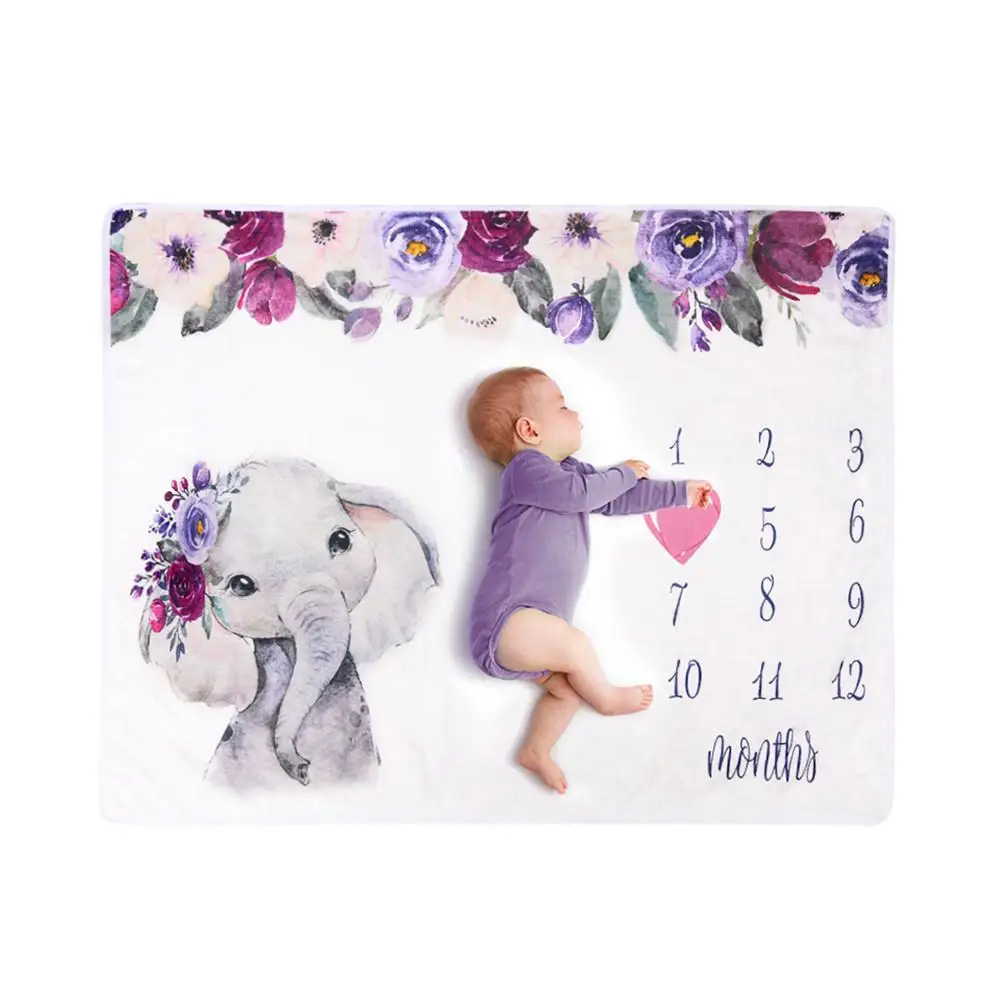 Одеяло Baby Milestone, одеяло для детской фотографии, реквизит, супер мягкое одеяло со слоном фланелевое одеяло с рисунком