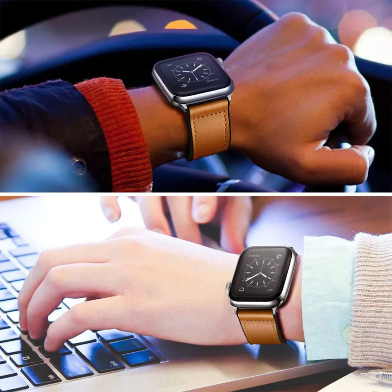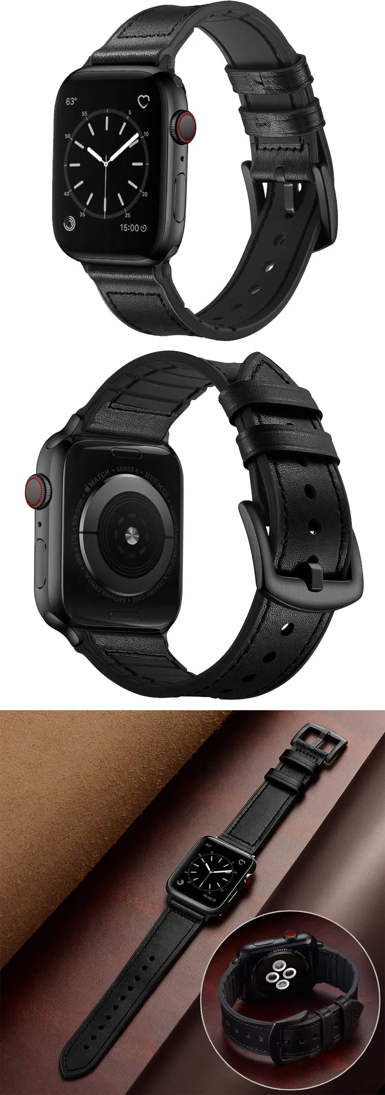 Обратите внимание:Потому что это натуральная кожаКаждая кожа будет иметь разницу в цветеУникальный дизайн: внешняя поверхность ремешка часов изготовлена из высококачественной натуральной кожи, а задняя часть из натурального черного силикона. Это Гибридный устойчивый к поту ремешок, удобный и легкий в носке.Удобная повязка: кожа Удобная, за исключением лета, когда тепло прилипает к коже. Но наша гибридная лента исправила эту проблему, добавив воздушные каналы к внутренней поверхности ремешка, давая вашей коже пространство для дыхания.Безопасность: ремешок поставляется с разъемами из нержавеющей стали на обоих концах, которые надежно фиксируются на часах, легко устанавливается и снимается. Инструменты не требуются.