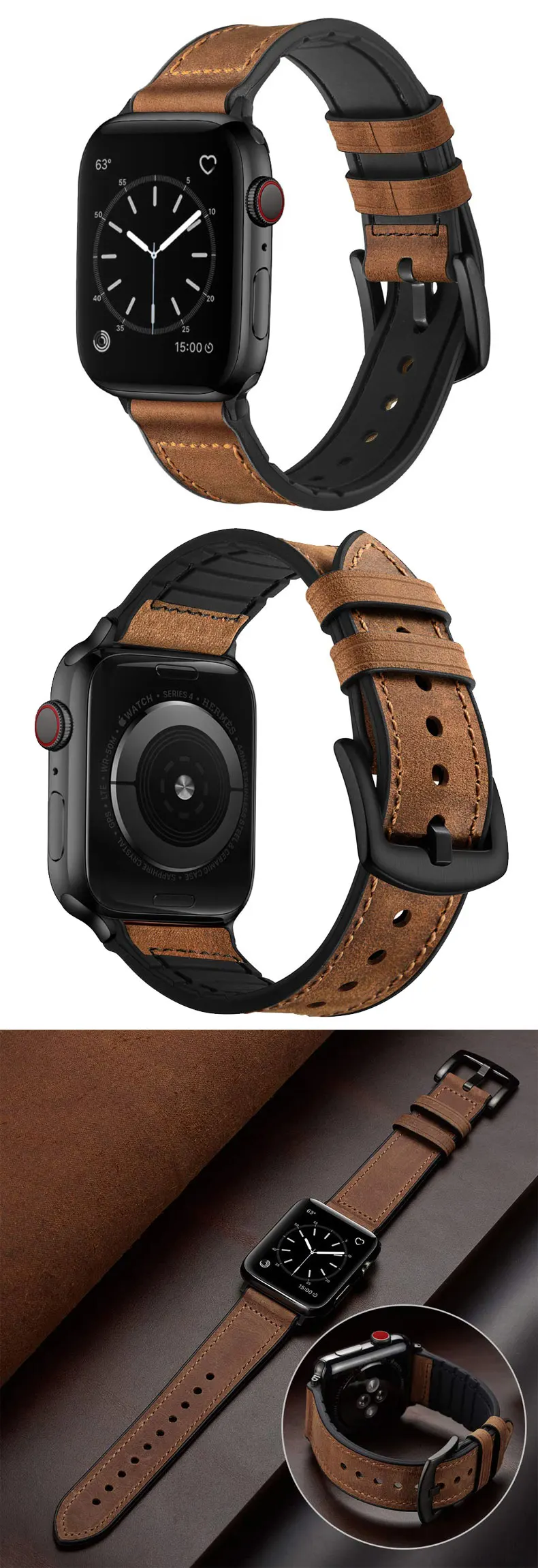 Винтажный кожаный и силиконовый ремешок для apple watch band 44 мм 40 мм 42 мм 38 мм iwatch apple watch 5/6/4/3/2/SE Аксессуары для браслета