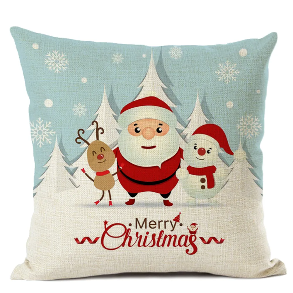 Рождественское украшение, наволочка с милым Санта-Клаусом, семейная подушка для дивана, 45x45 см, льняная наволочка, двухсторонняя печать