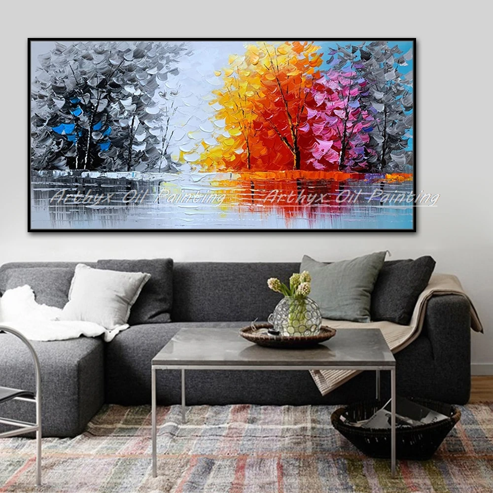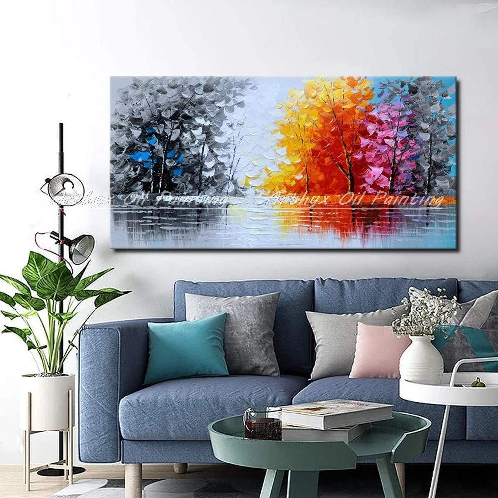 Картина маслом Arthyx, большого размера, ручная роспись, деревья, пейзаж, холст, современные настенные картины для гостиной, домашний декор