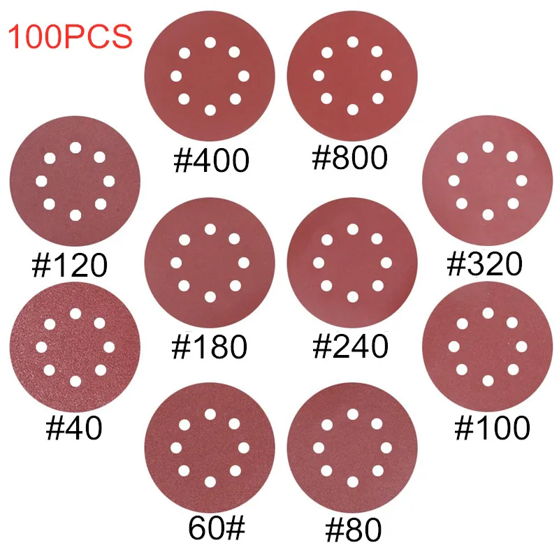 100 шт 125 мм круглые шлифовальные диски Крюк Петля шлифовальная бумага Полировочная бумага 8 отверстий Полировочная, шлифовальная машинка