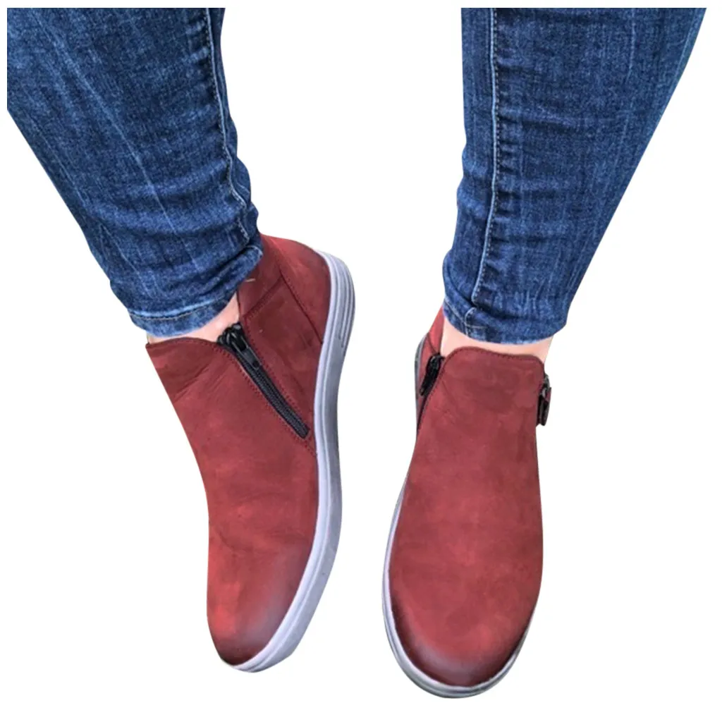 Женские ботильоны, модные повседневные однотонные короткие ботильоны в стиле ретро, на молнии, на плоской подошве, Осень-зима, женская короткая прогулочная обувь #40